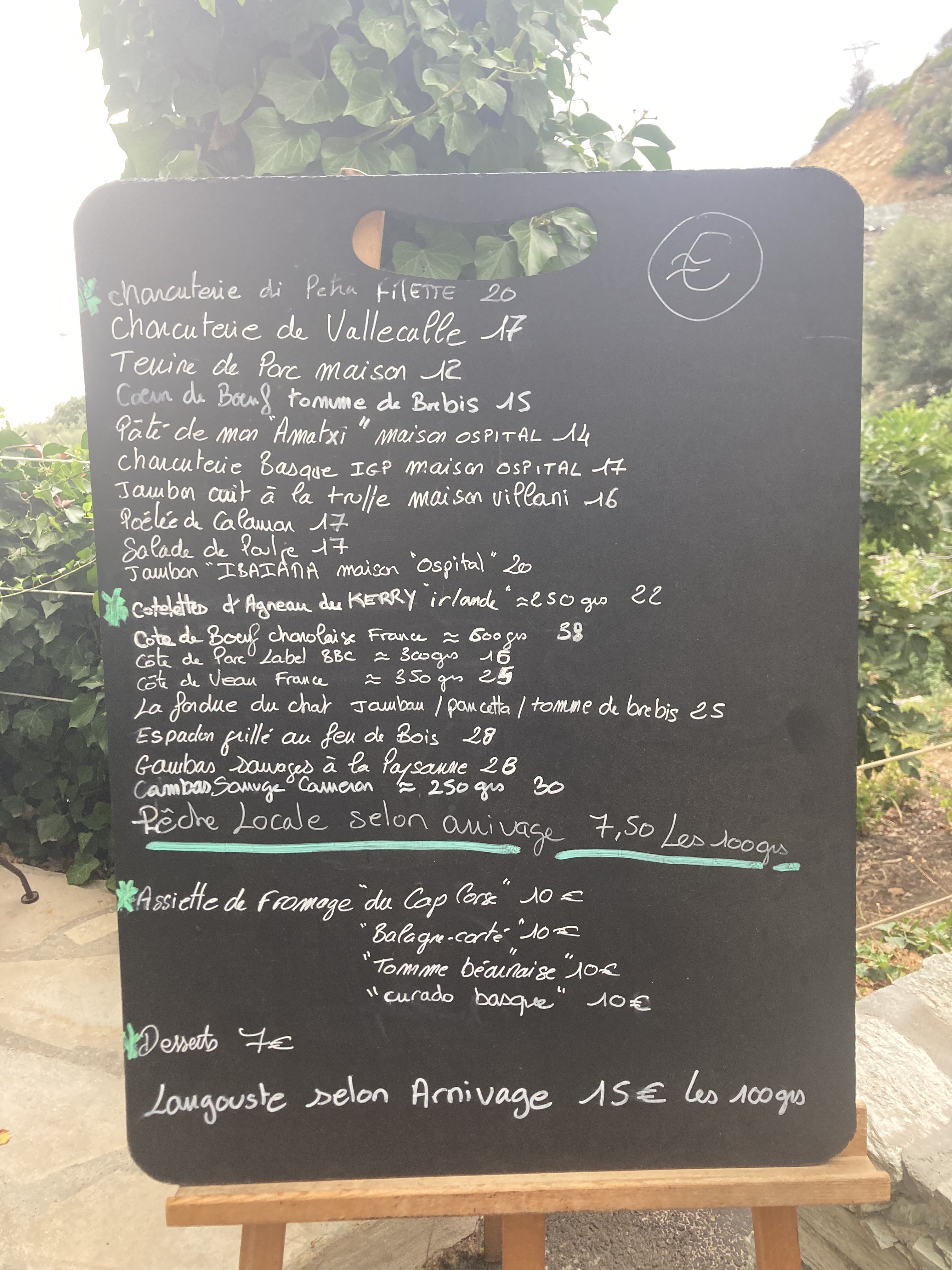 Une cuisine corse précise, goûteuse tant sur les poissons que les viandes. Charcuteries et fromages au top. Beaux desserts. Terrasse au dessus des magnifiques potagers en espalier qui dominent la mer : vue exceptionnelle.