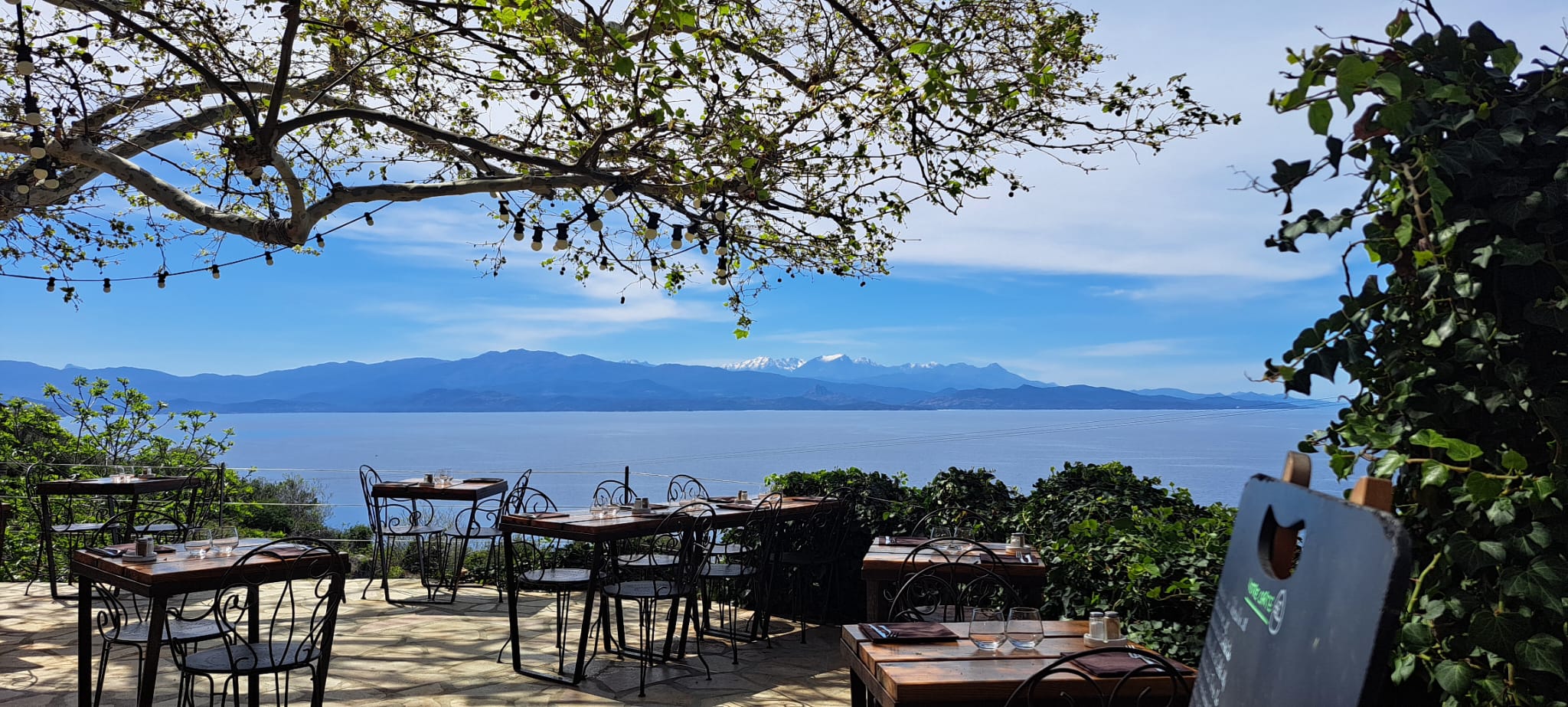 Une vue sur le Golfe de St Florent, au détour d'un virage on découvre cette auberge qui propose restauration le midi et le soir ainsi qu'un arrêt pour se désaltérer dans un cadre magnifique. La commande est prise avec sourire ce qui donne un plus ! Un arrêt s'impose sur la parcours du Cap Corse !