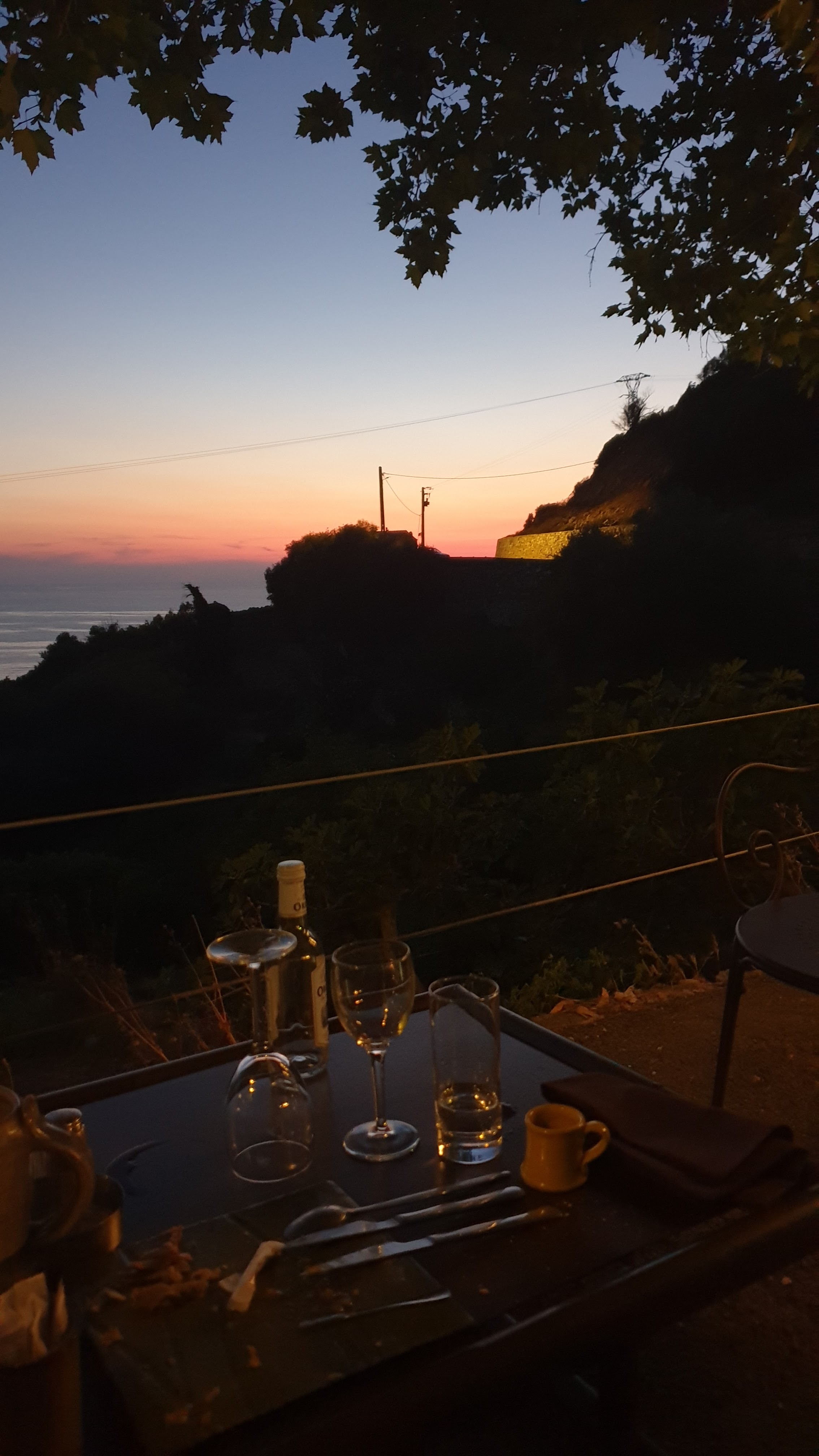 Boss sympa au telephone… et nous etions en rade car arrive tard pour manger dans l’apres-midi. Boss souriant a l’arrivee. Superbe vue. Magnifique chant corse. Excellente cuisine. Serveur sympa. Ok il y avait un peu de guepes mais il semble qu’il y en a partout cet ete autour du Cap Corse. Ciao Robo!