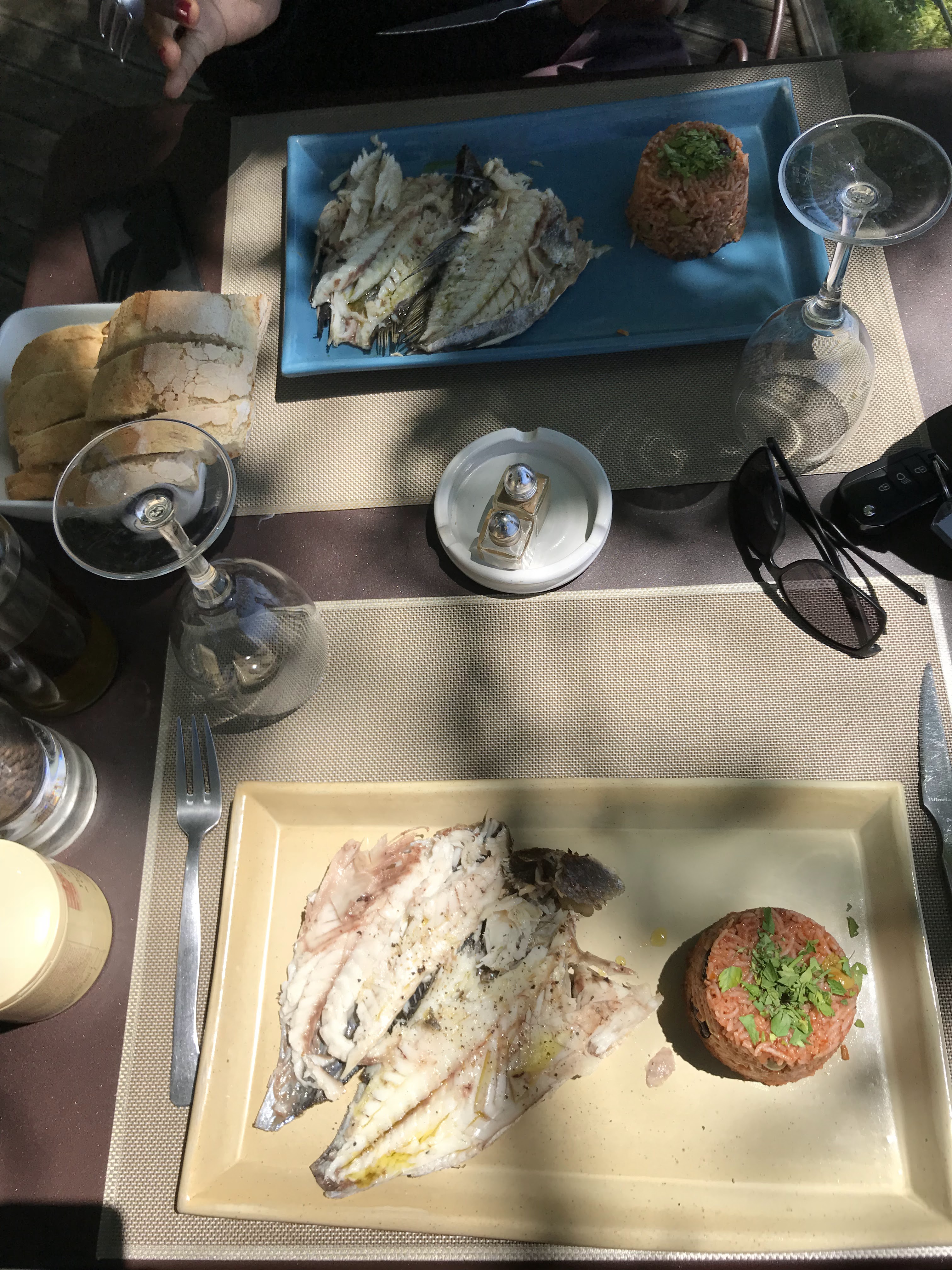 Placés en terrasse avec une superbe vue ,a l ombre des arbres nous avons deguste un poisson peché du jour cuit au feu de bois,divin!!!pour finir un sorbet de melon fait maison a tomber !!!je recommande vivement cette adresse,sans parler de la gentillesse des personnes qui gèrent ce resto