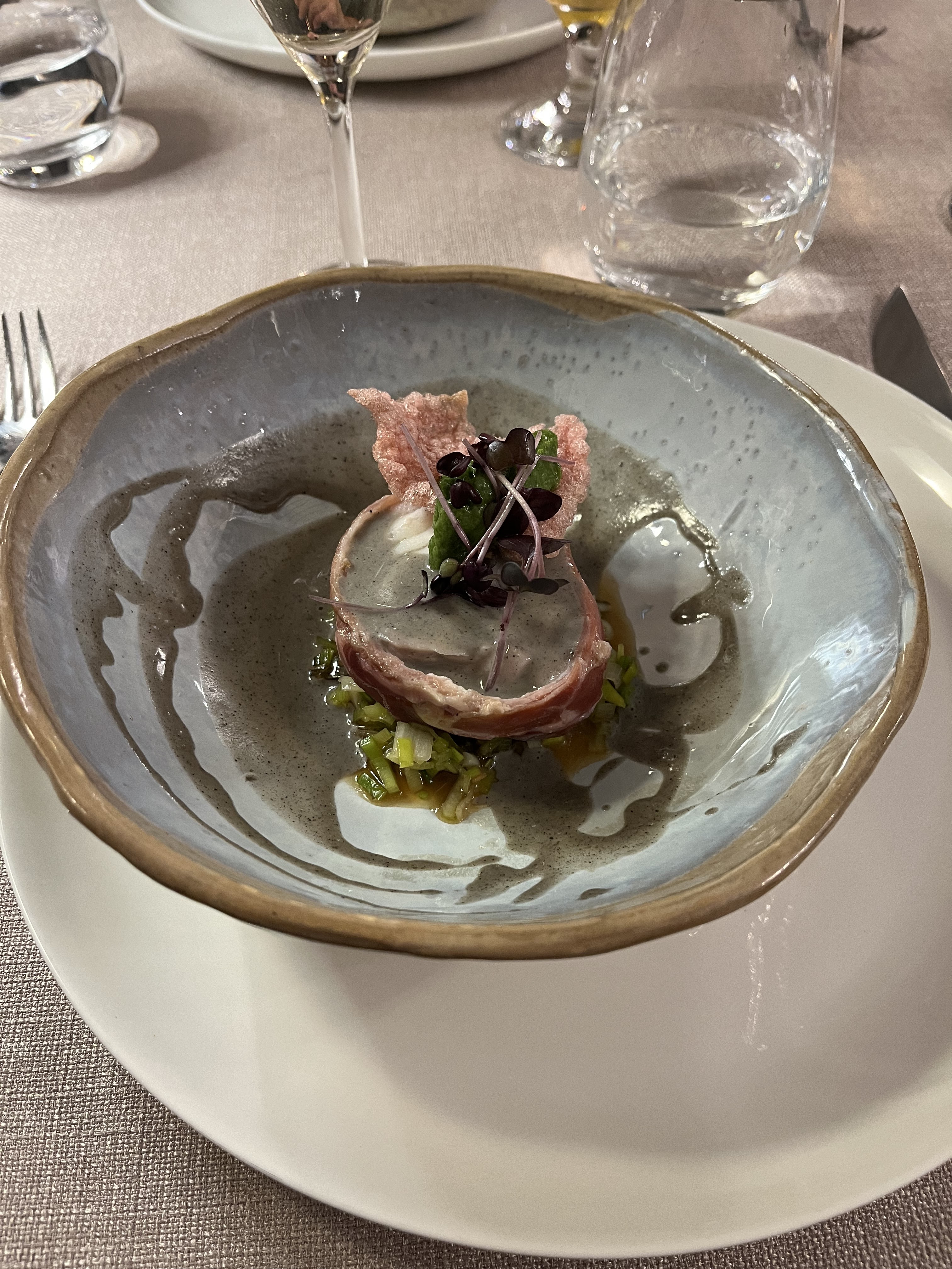 Délicieux déjeuner du dimanche dans ce merveilleux restaurant situé dans un charmant village. c'était notre première visite, mais j'espère vraiment y retourner bientôt. La présentation des plats était parfaite et très imaginative, avec une combinaison intéressante de saveurs. Le personnel était très sympathique et l'ambiance était détendue et pas du tout étouffante pour un endroit d'une telle qualité. Recommande fortement.