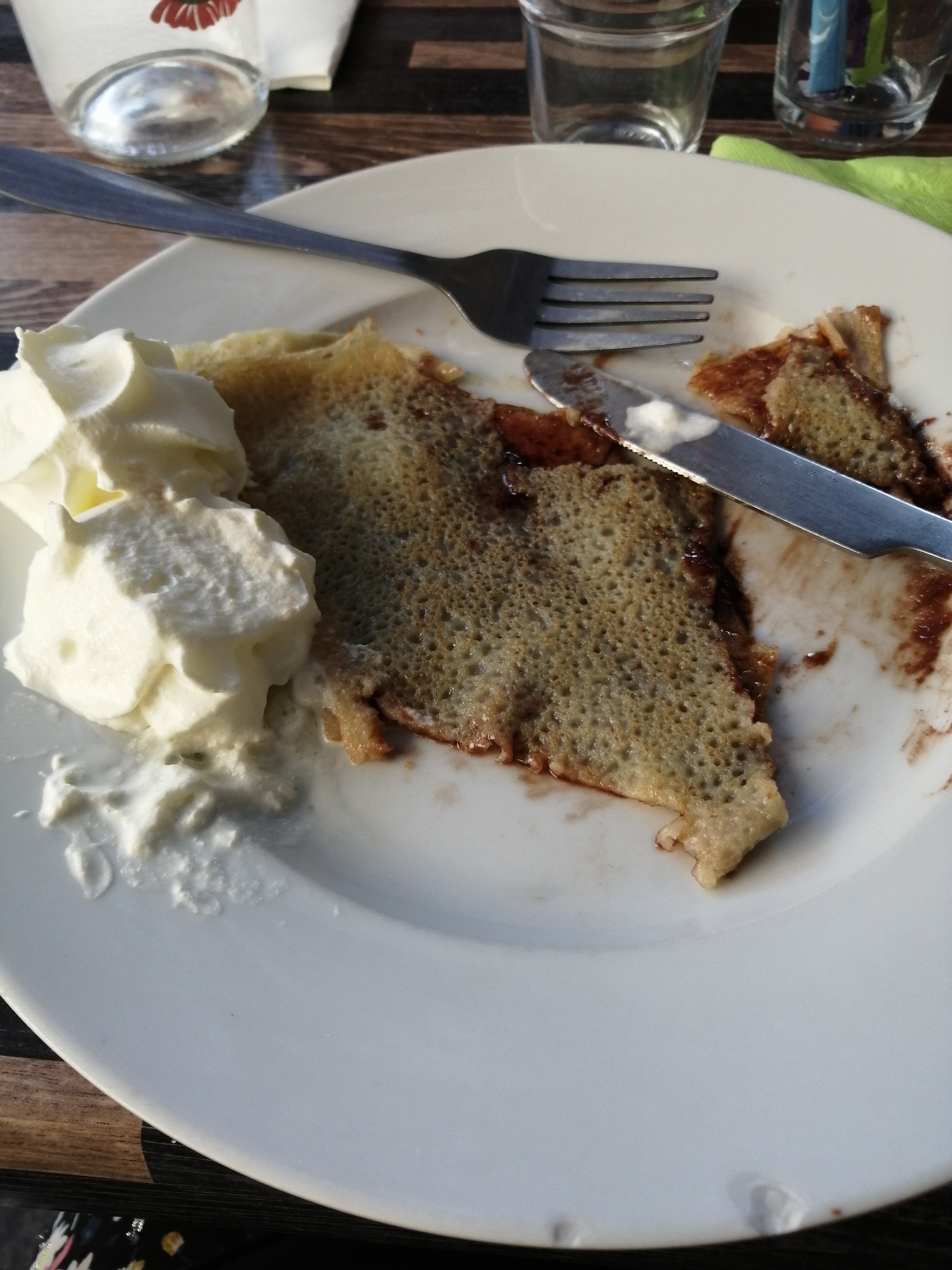 Galettes et crêpes simples mais efficaces et surtout service hyper rapide, les 2 serveurs étaient très gentils souriants et polis ET ils portent le masque comme il faut. En plus crêpes Nutella dans le menu enfant. C'est tout à fait honnête.