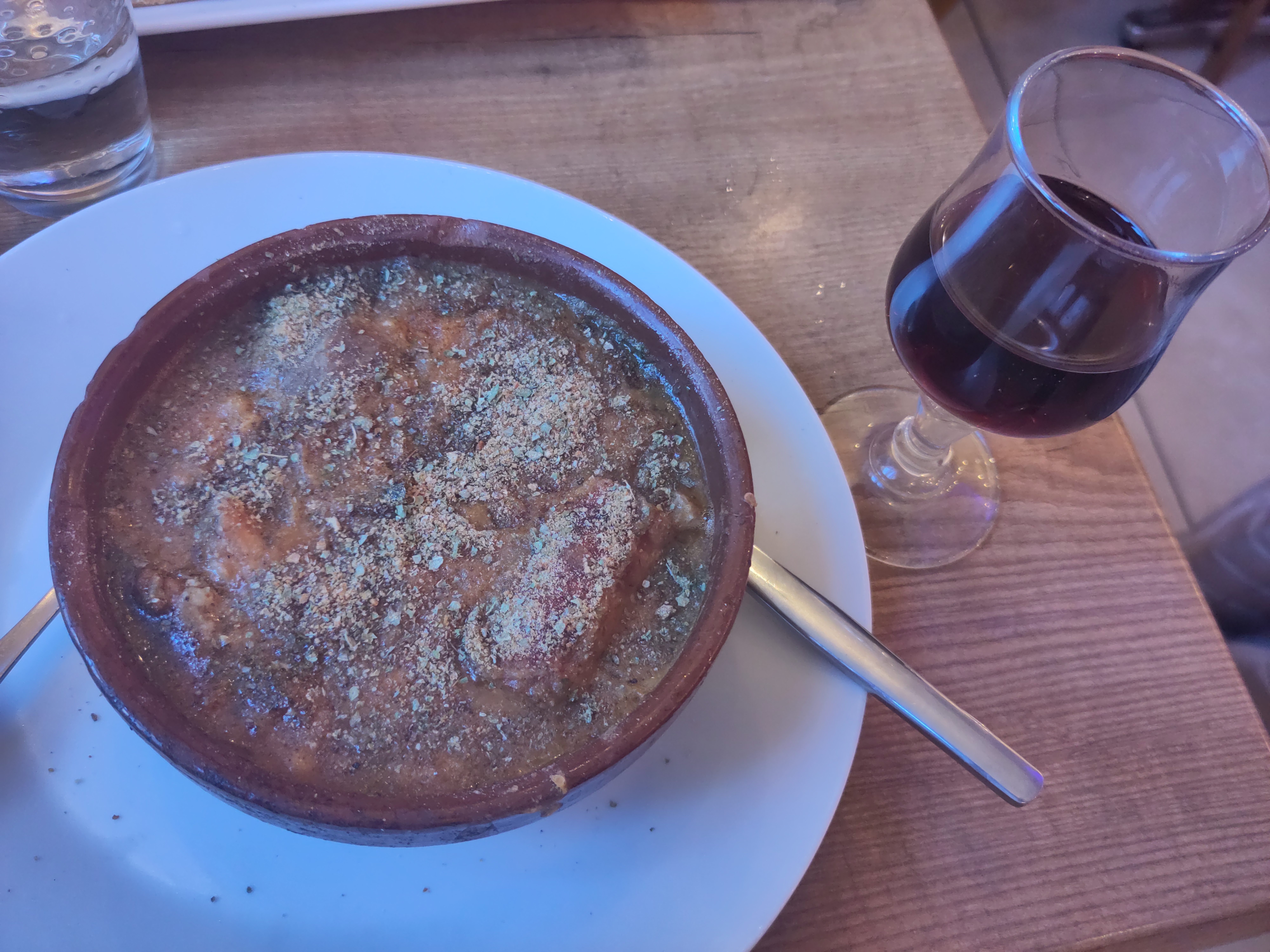 25 juilet 2019 La cité médiévale est envahie de commerces mais, la domination des restaurants est grande avec leur cassoulet fait maison. En plein mois de juillet et sous une forte chaleur, je me suis laissé tenter ! Nous voilà parti dans le premier restaurant avec une grande (façon de parler) terrasse. Rapidement installés puis la commande rapidement prise, nous avons été servis tout aussi rapidement d’assiettes copieuses mais sans aucun charme. De l’attrape touriste comme les menus affichés à 12,50€ sur une grande ardoise puis à 14,50€ sur les cartes avec une mini variante comme l’omelette remplacée à une galette ! Après la salade paysanne en entrée, voilà enfin arriver le cassoulet. La portion est très modeste, suffisante pour mon appétit et cette chaleur, juste bonne mais pas de quoi casser les pattes à un canard ))) Servi très chaud. Et pour dessert une île flottante qui ne flottait absolument pas, dans une crème anglaise sans goût. A ce prix là, je ne pouvais pas m’attendre à un restaurant gastronomique mais au moins à des plats équilibrés et séduisants. C’est peine perdue. J’aurais dû être plus patient et choisir une autre table plus sophistiquée certainement plus chère, mais qu’importe si le plaisir et le goût l’emportent !!