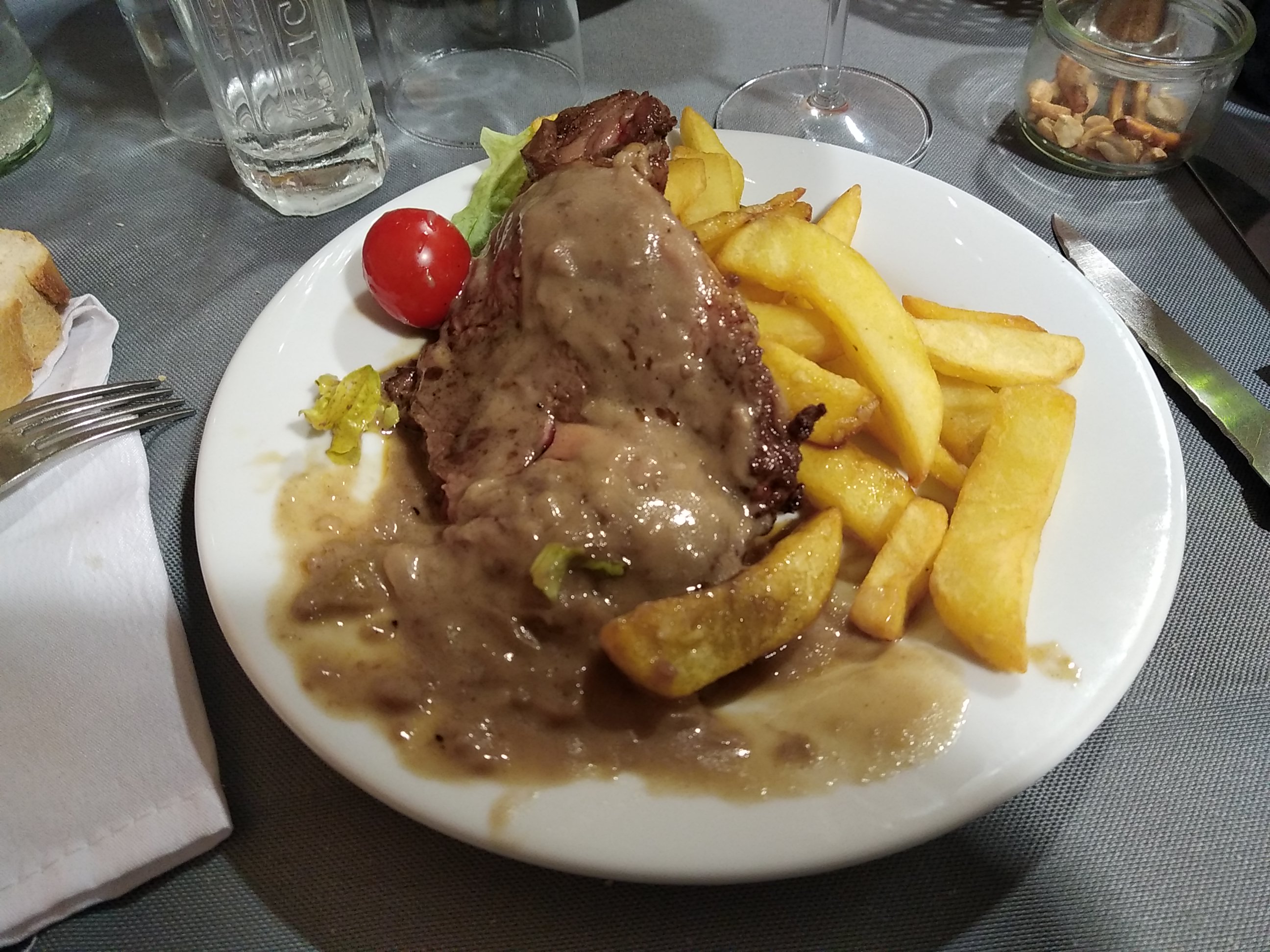 Bon rapport qualité/prix. Les plats sont très généreux et bons. Le cadre est un peu désuet. Je reproche juste un ajout trop important à mon goût de sel sur les frites.