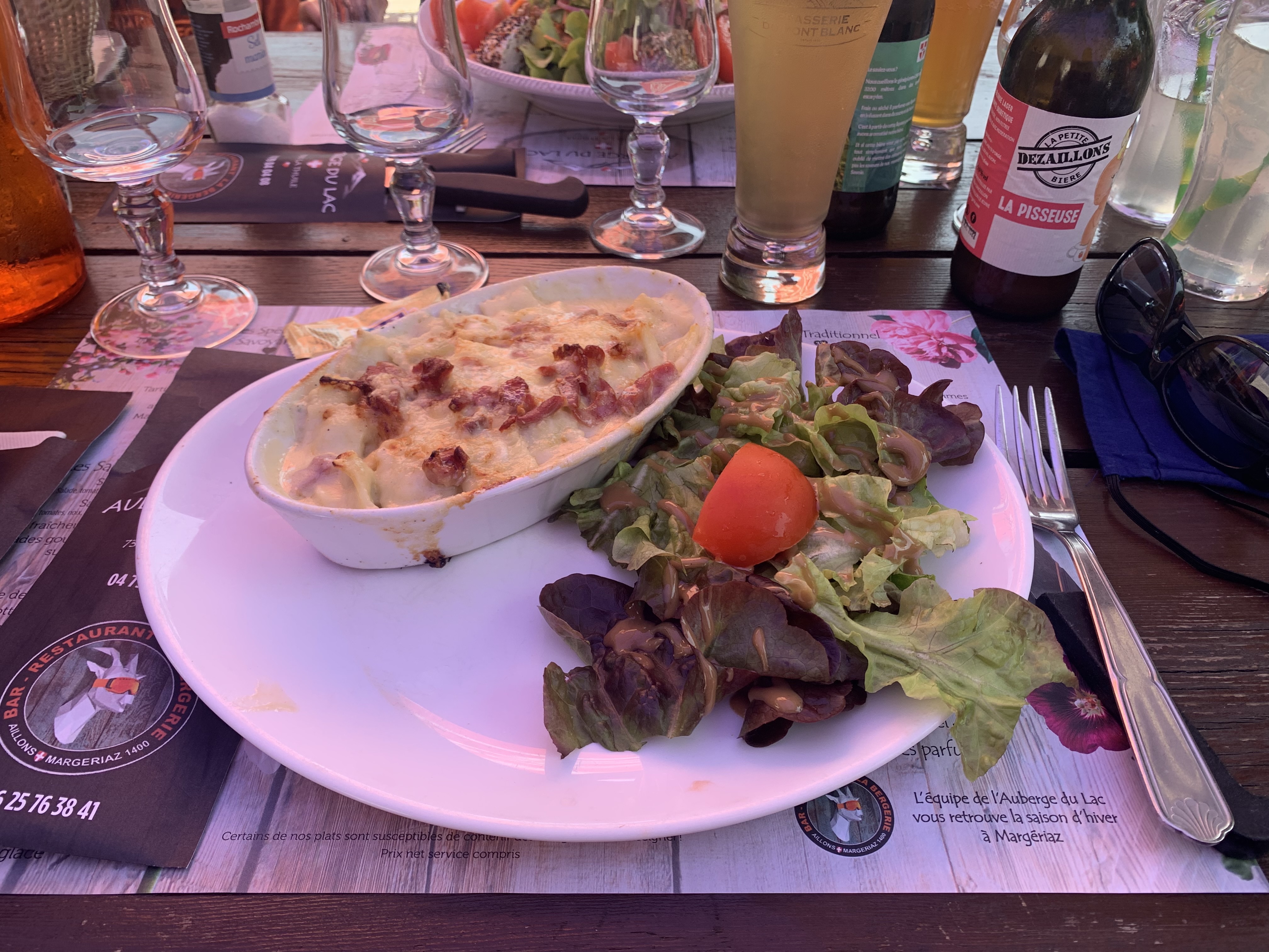 Découvert par hasard, on a très bien dîné (hamburger et raviolew à la tome). Pas de dessert car bien copieux. Le service est sympa et efficace par la patronne. On y est même retourné boire un verre un soir et jouer aux cartes sous les arbres. Il fait tellement plus frais au lac qu'à Chambéry...