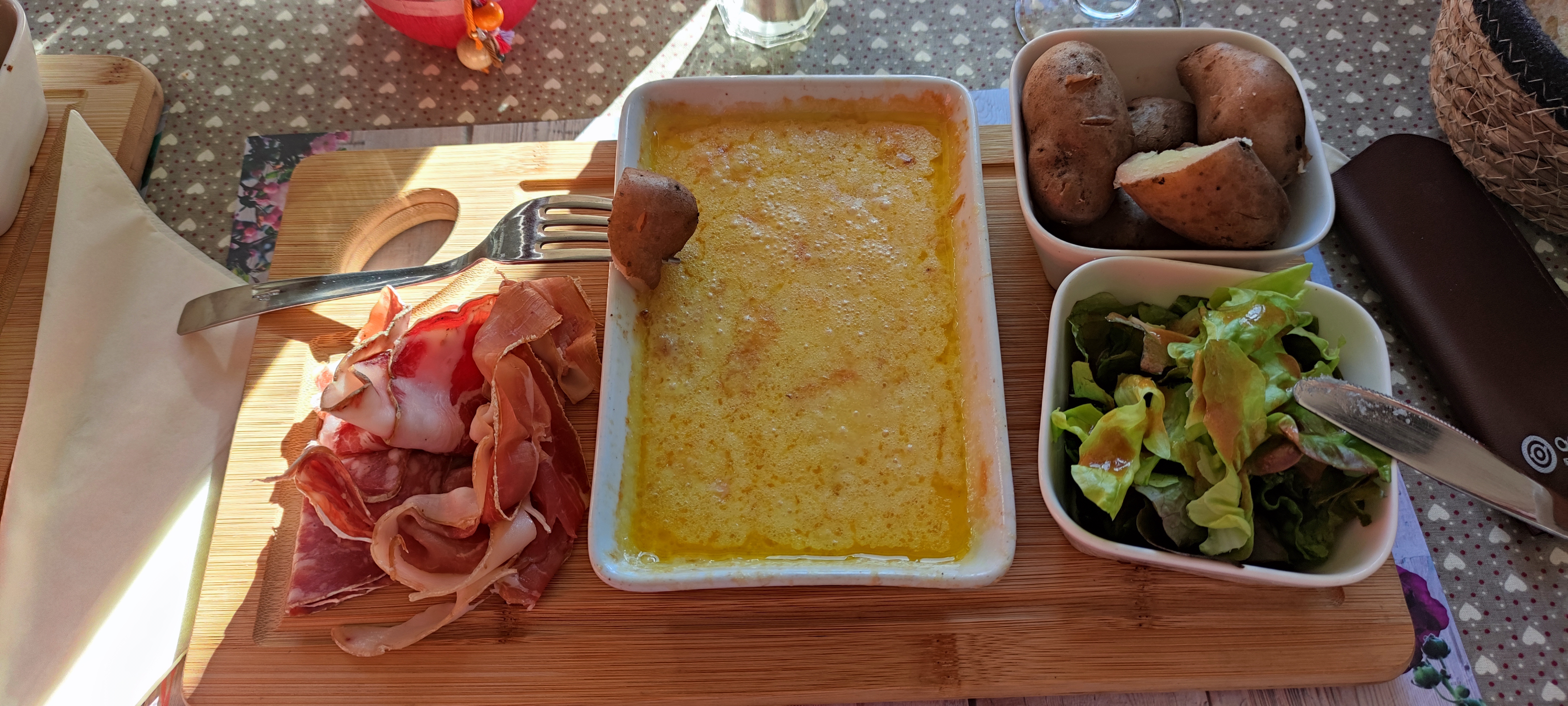 Très sympa, des produits très frais, mais globalement très moyen en cuisine : les salades composées sont très pauvres en tout sauf en salade , gratin de crozet tout sec et minimaliste, diots et sauce vraiment pas exceptionnels mais corrects. Gamay génial et abordable ! Service attentif.