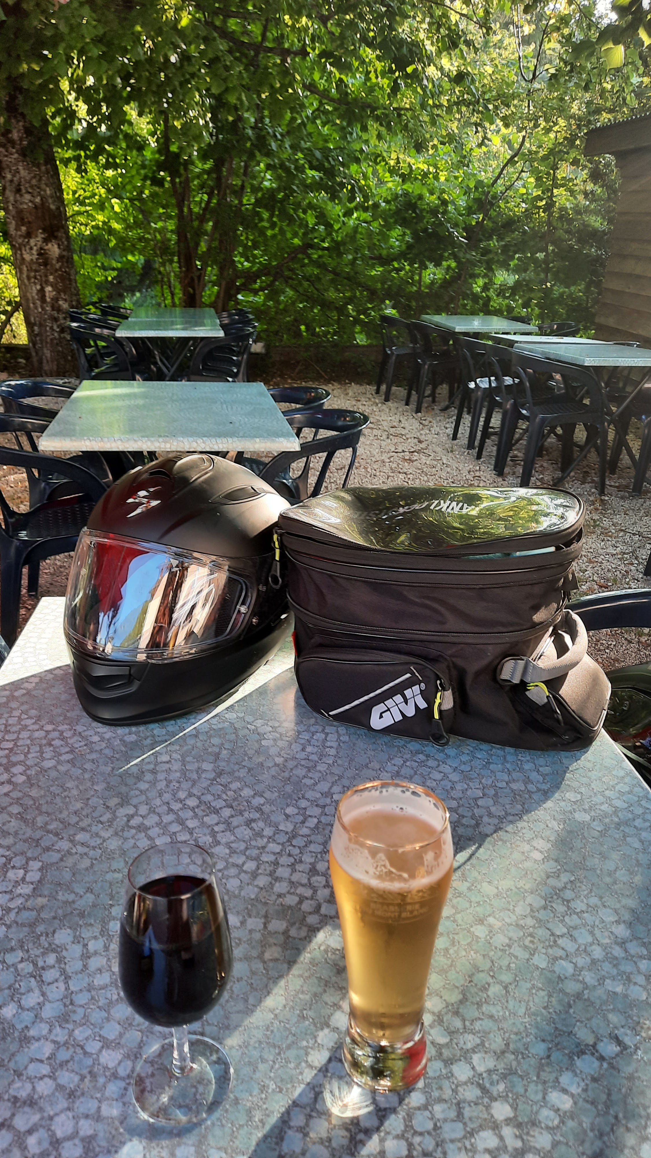 De passage a vélo, lors d'une averse, pour un bon café en terrasse abrité.