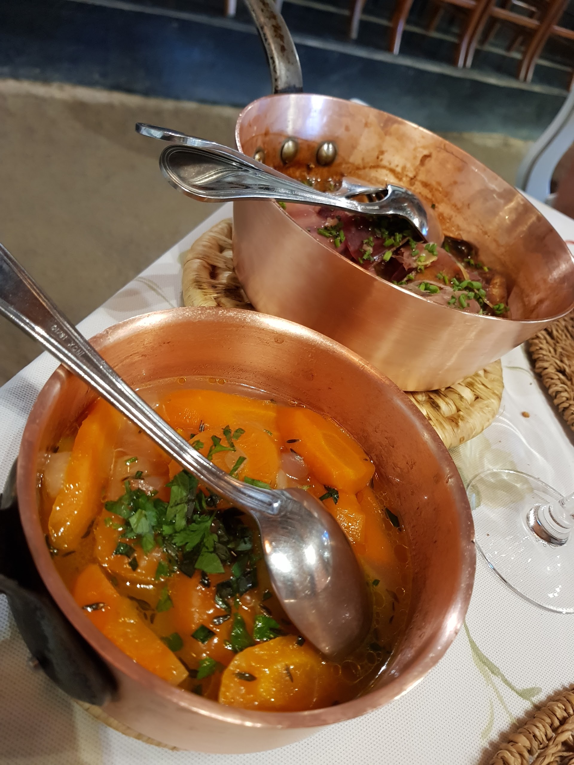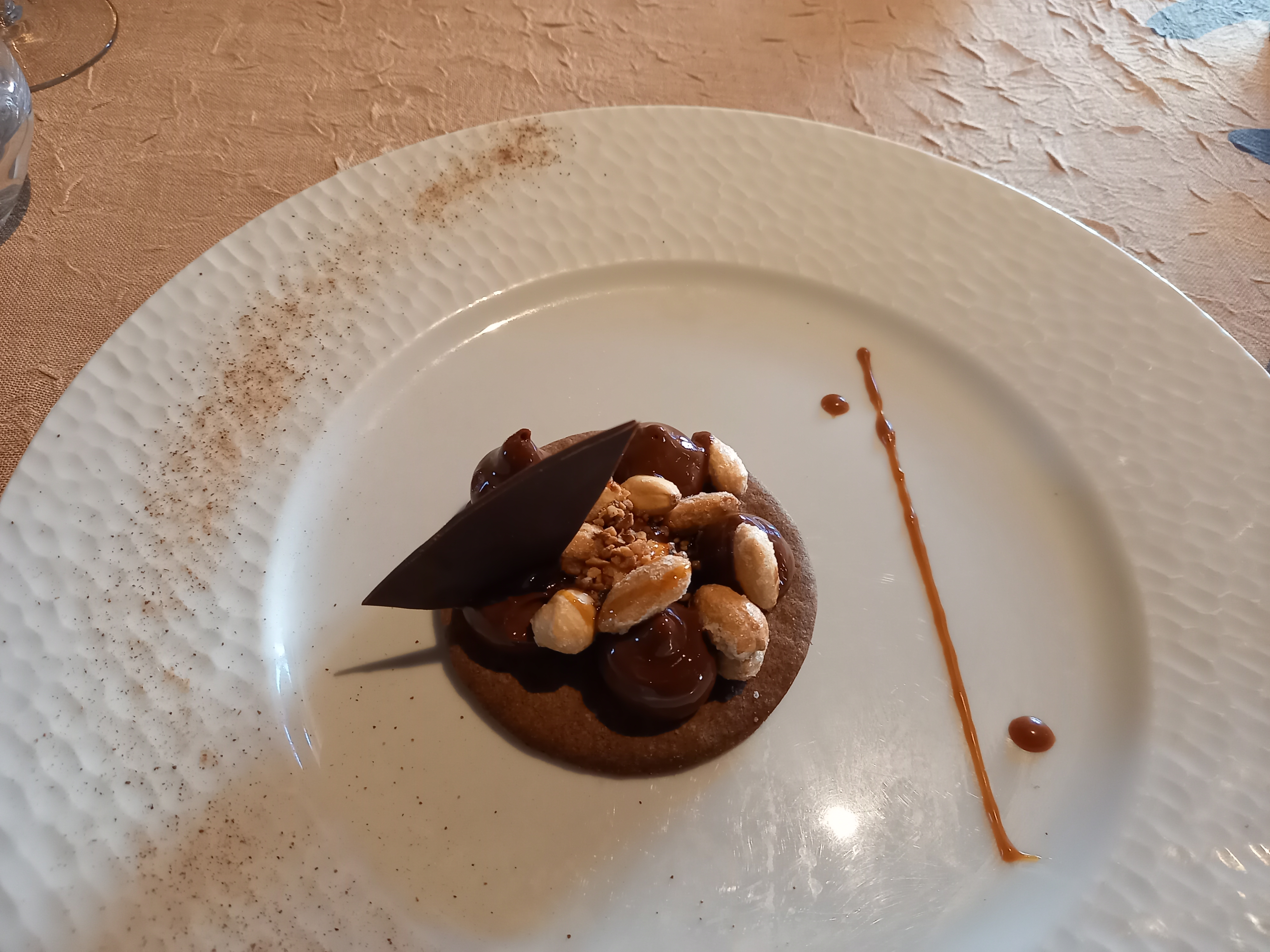 Bonbons de pieds de cochons, ris de veau et carottes Vichy avec pour terminer 1 palet avec une généreuse ganache de chocolat...service attentif, un bib gourmand mérité ! Surtout prenez les plats qui sont font le succès de l'auberge depuis des lustres. Pouillon, un moment suspendu pour une cuisine généreuse du terroir landais !