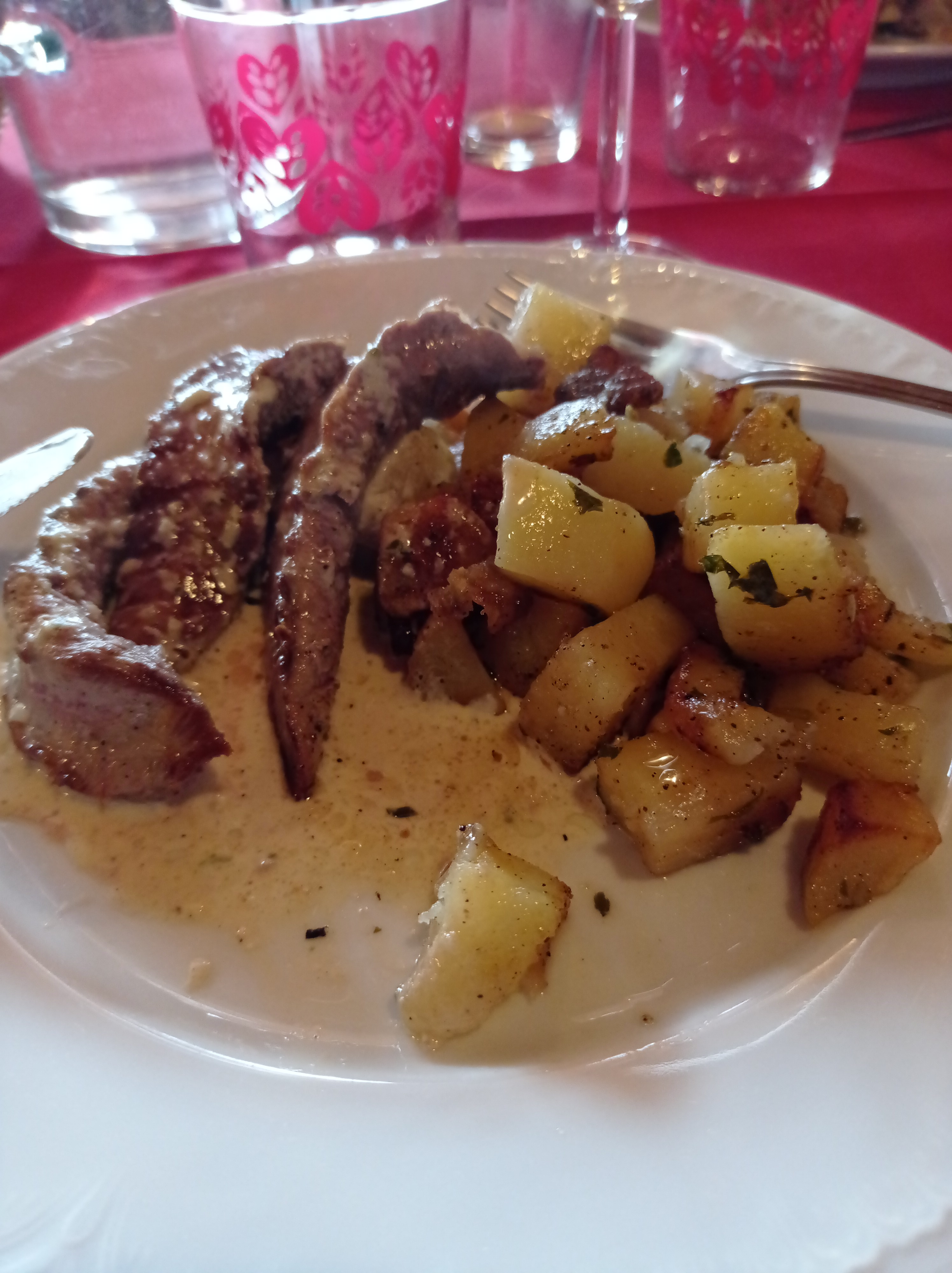 Aiguillettes de canard à la crème d'ail et pommes de terre sautées