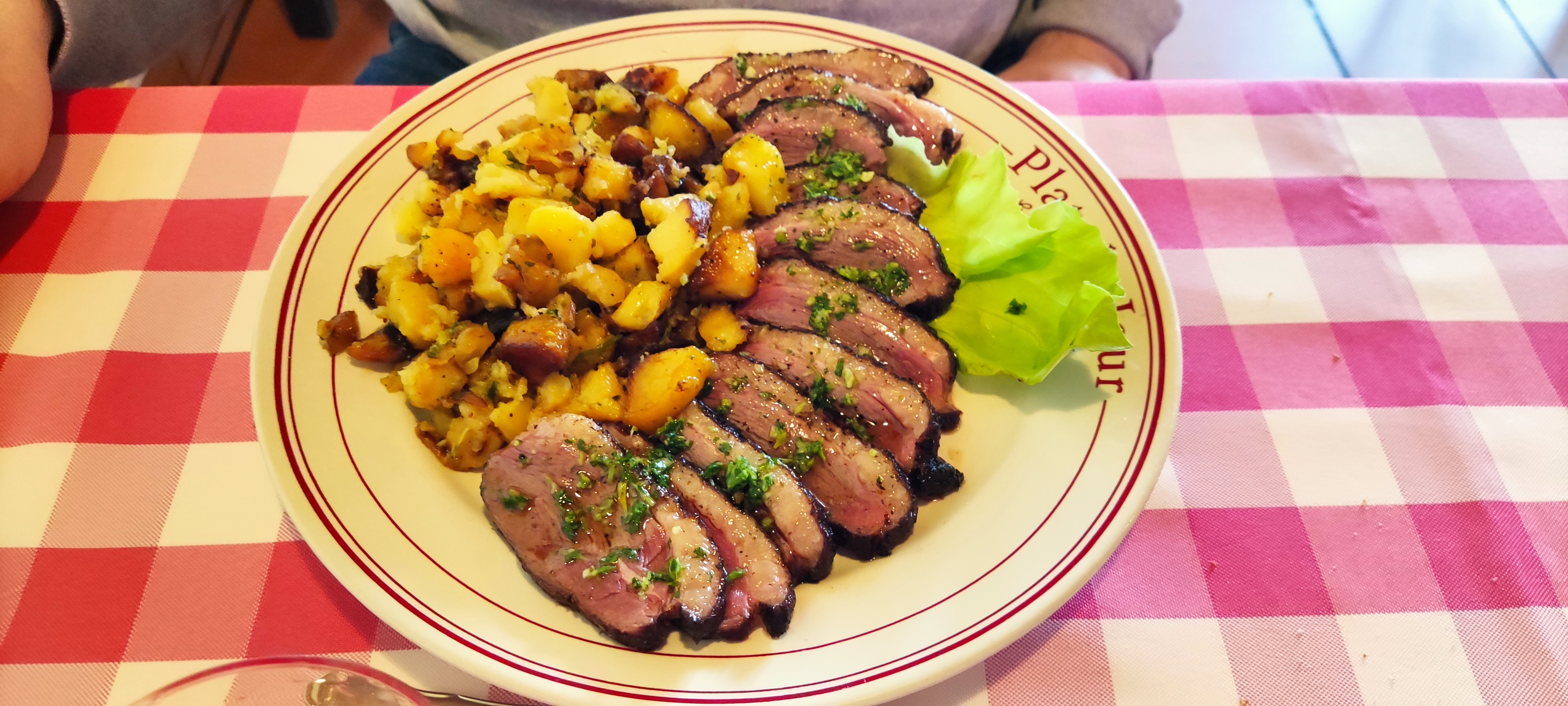 ce n'est pas la première fois que je vais y déjeuner mais la le confit d'oie était sec,les pommes de terre sarladaise étaient pas très chaude et un peu brûlée