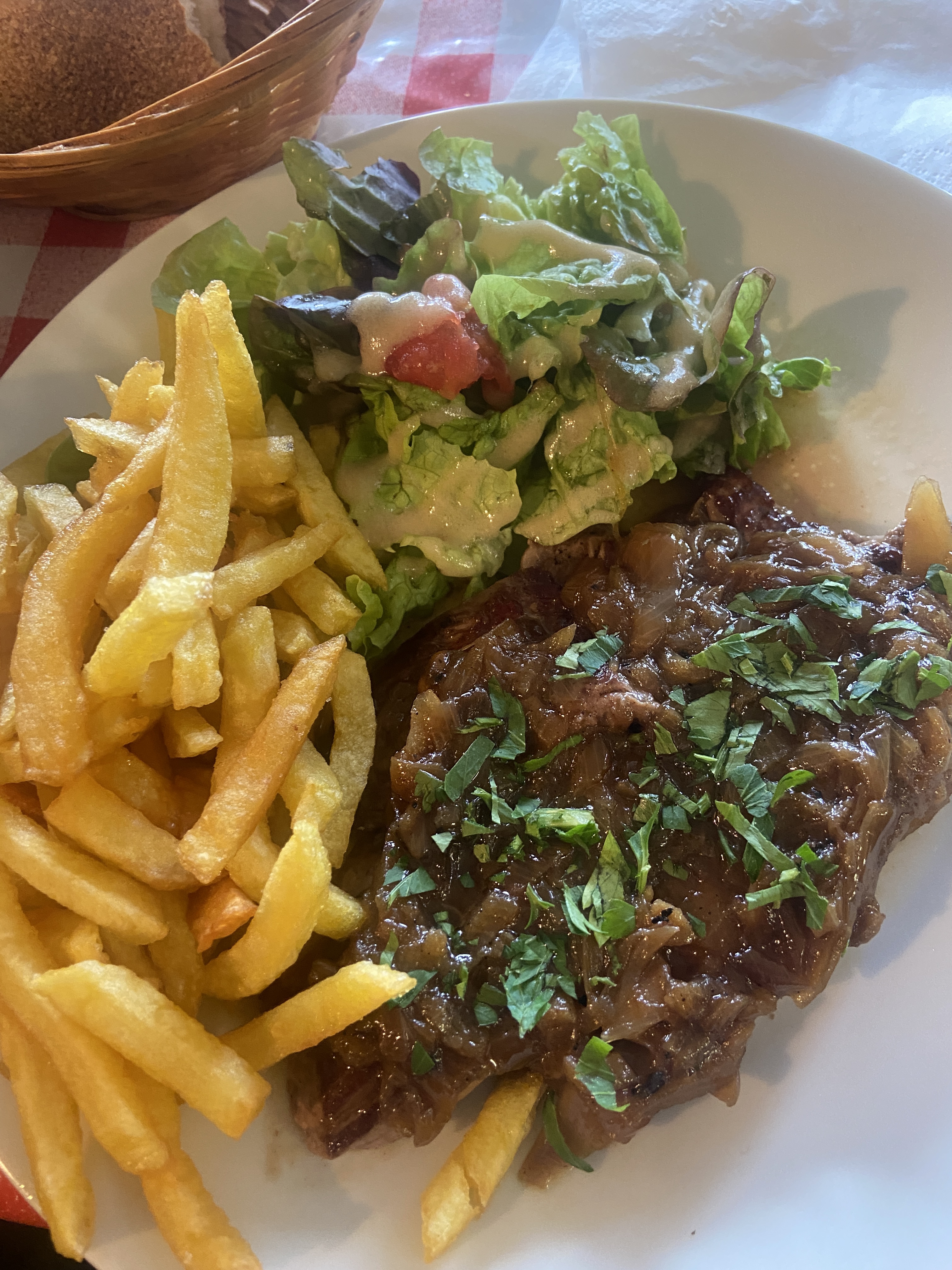Très bien mangé, bavette frites sauce échalote et poulet provençale frites , et 2 mousses au chocolat, Pas cher et le personnel est accueillant.