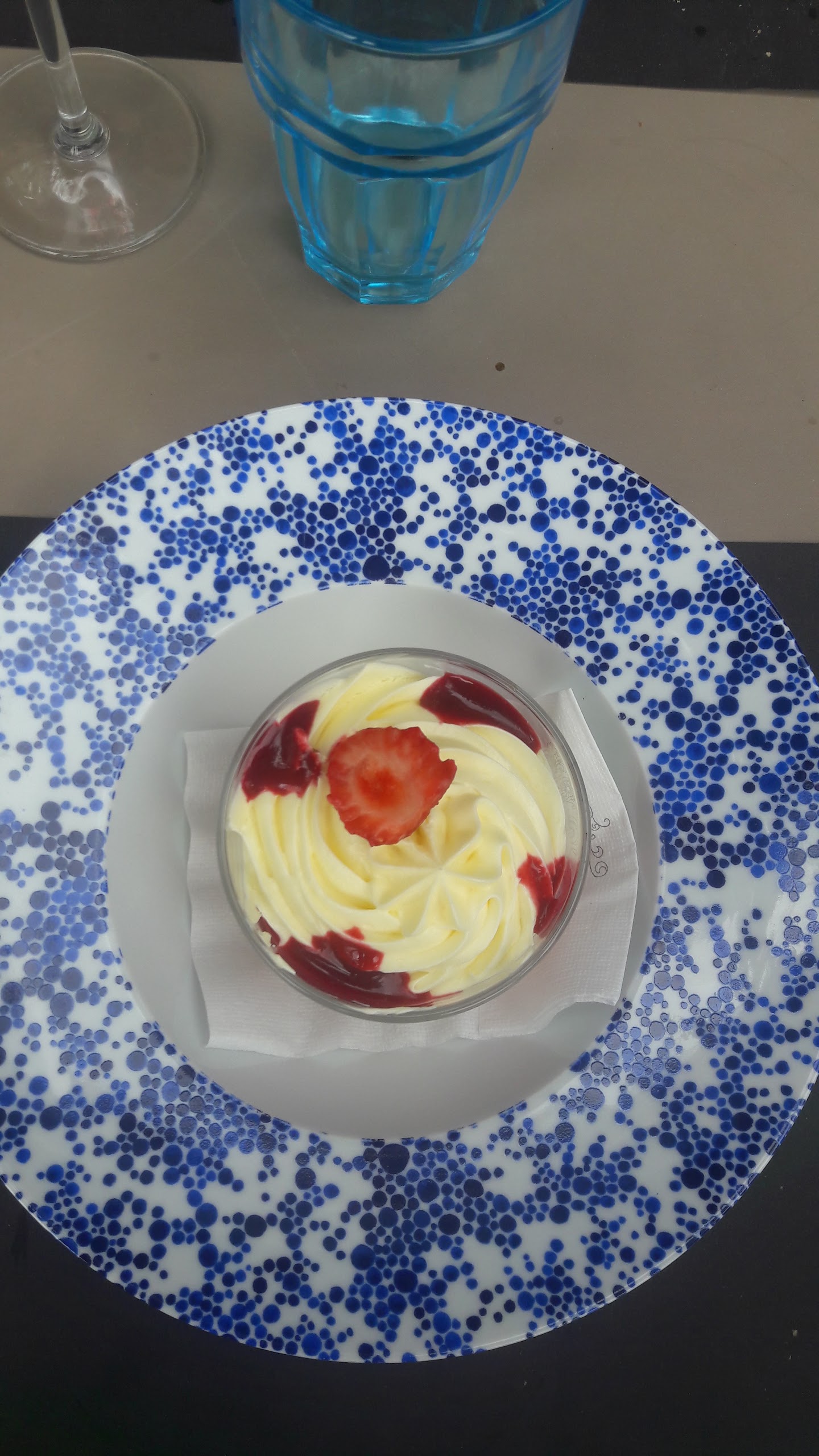 Déçu, Dos de cabillaud avec un odeur forte, purée de carotte froide . Tarte aux fraises industrielle. Pour un restaurant gastronomique, une grande déception