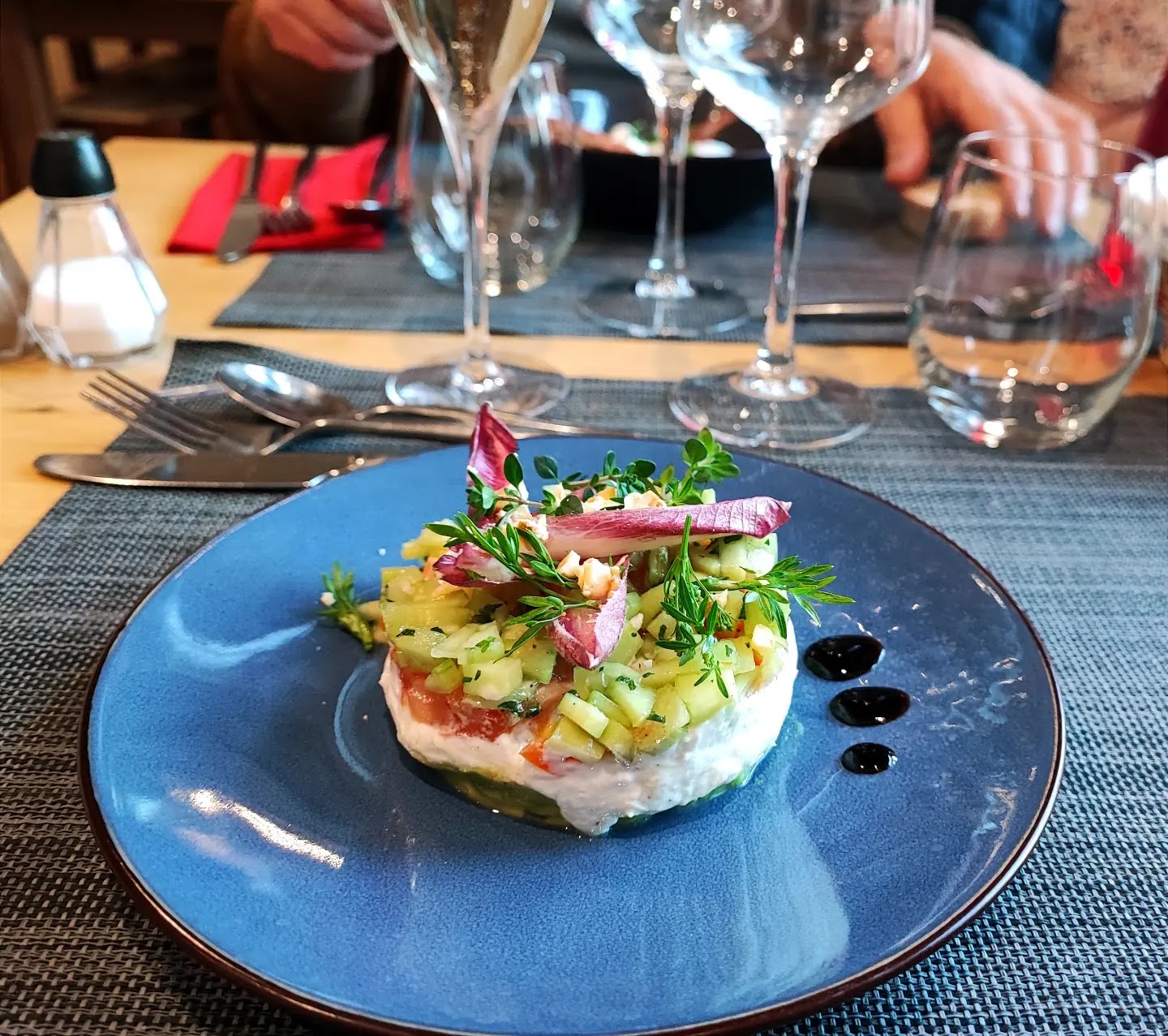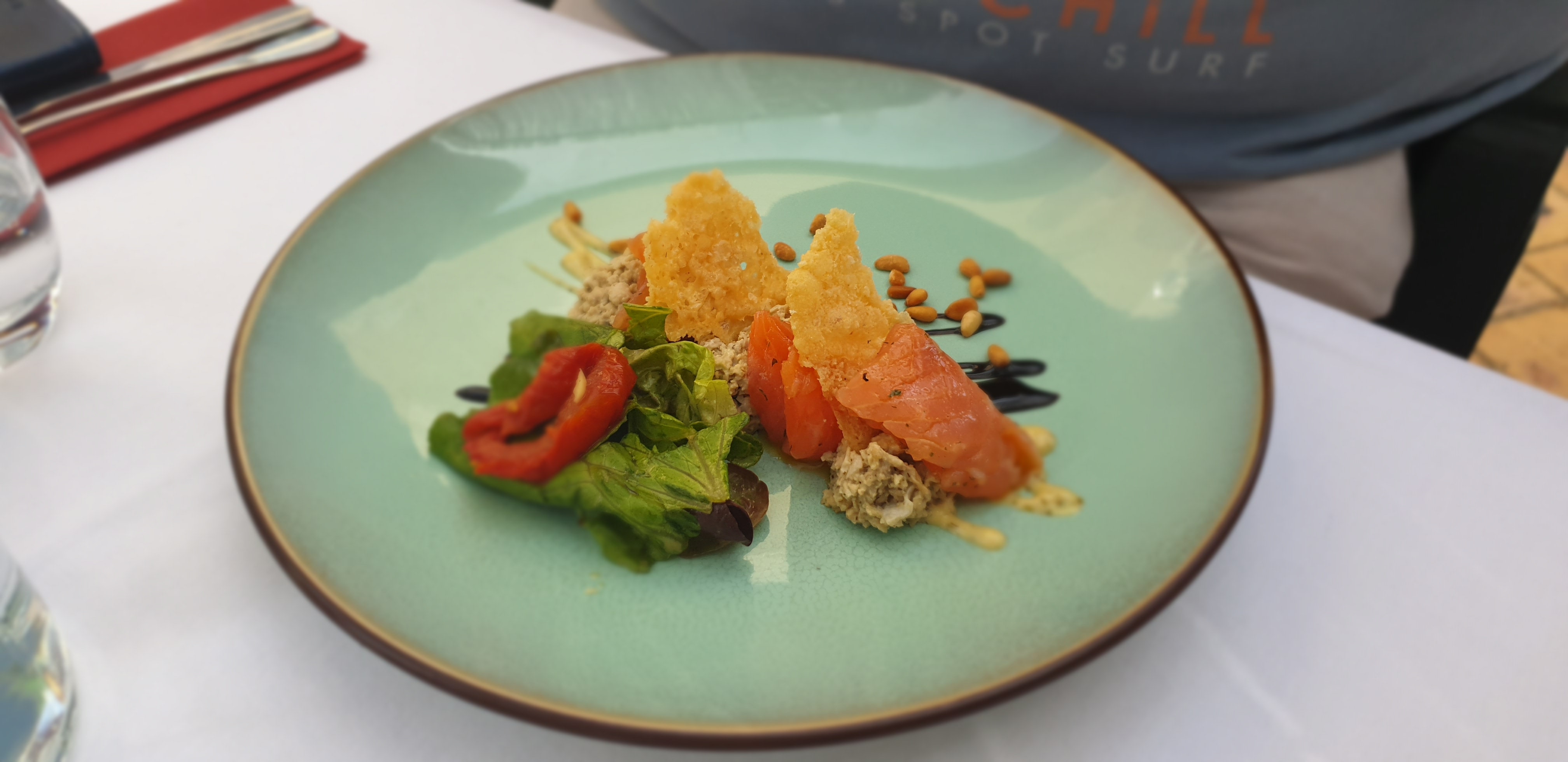 Cuisine raffinée et recherchée ! Cadre en terrasse très agréable et très bons vins à la carte. En photo : la mise en bouche offerte et deux entées. Petit bémol pour les portions, notamment du plat qui étaient justes (surtout quand c’est aussi bon) ! Sinon rien à dire je recommande !