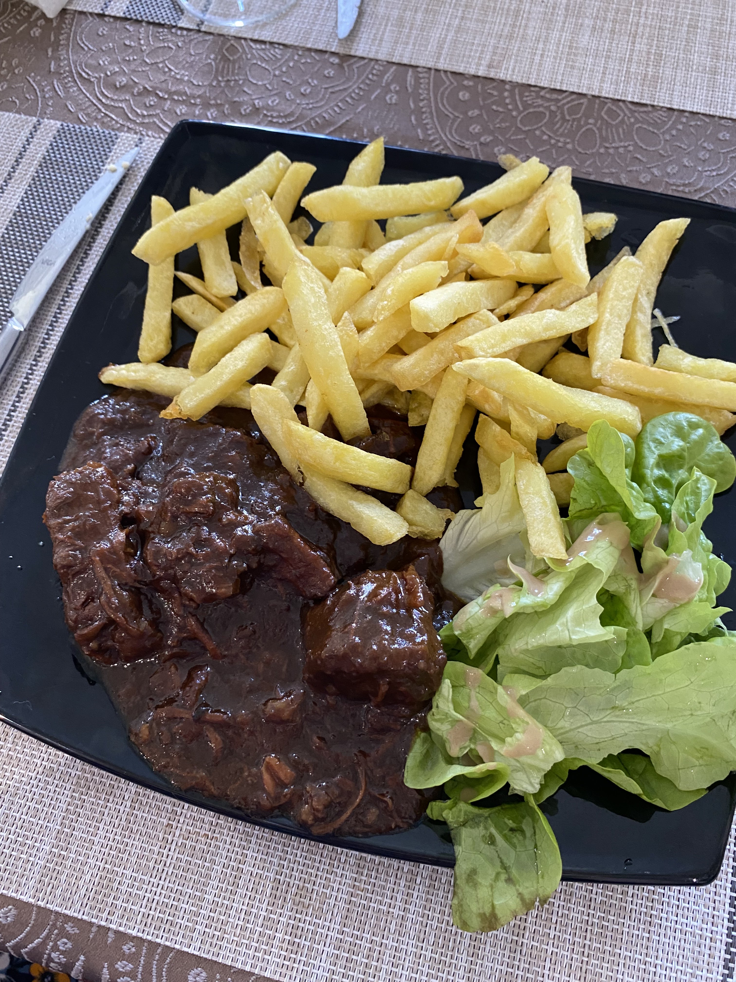 Carbonnade flamande délicieuse. Andouillette de très bonne qualité..
