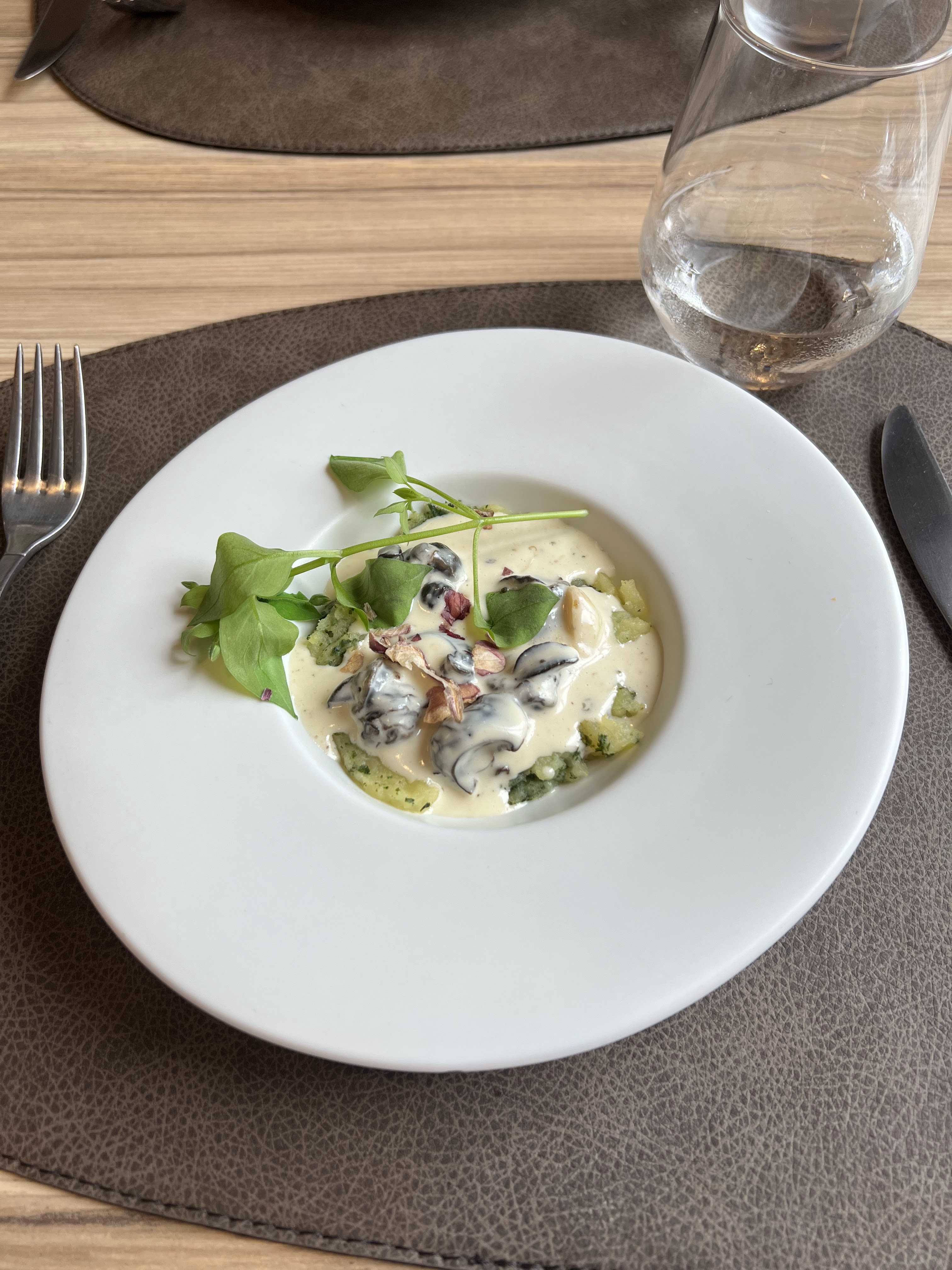Gemme cachée! Nourriture délicieuse, ambiance agréable, bonne sélection de vins. Nous avons choisi le Menu complet avec une incroyable sélection d'entrées (essayez la ficelle picard locale !), de plats principaux et de desserts accompagnés d'un granité nettoyant pour palette et d'un plat de fromages (mini fondue ou trio de fromages locaux). Les entrées et les plats ont disparu avant que je parvienne à prendre une photo… Les portions sont très généreuses alors venez affamé ! Attendez-vous à y passer du temps, l'attente est un peu longue entre les plats mais la nourriture et l'ambiance en valent vraiment la peine.