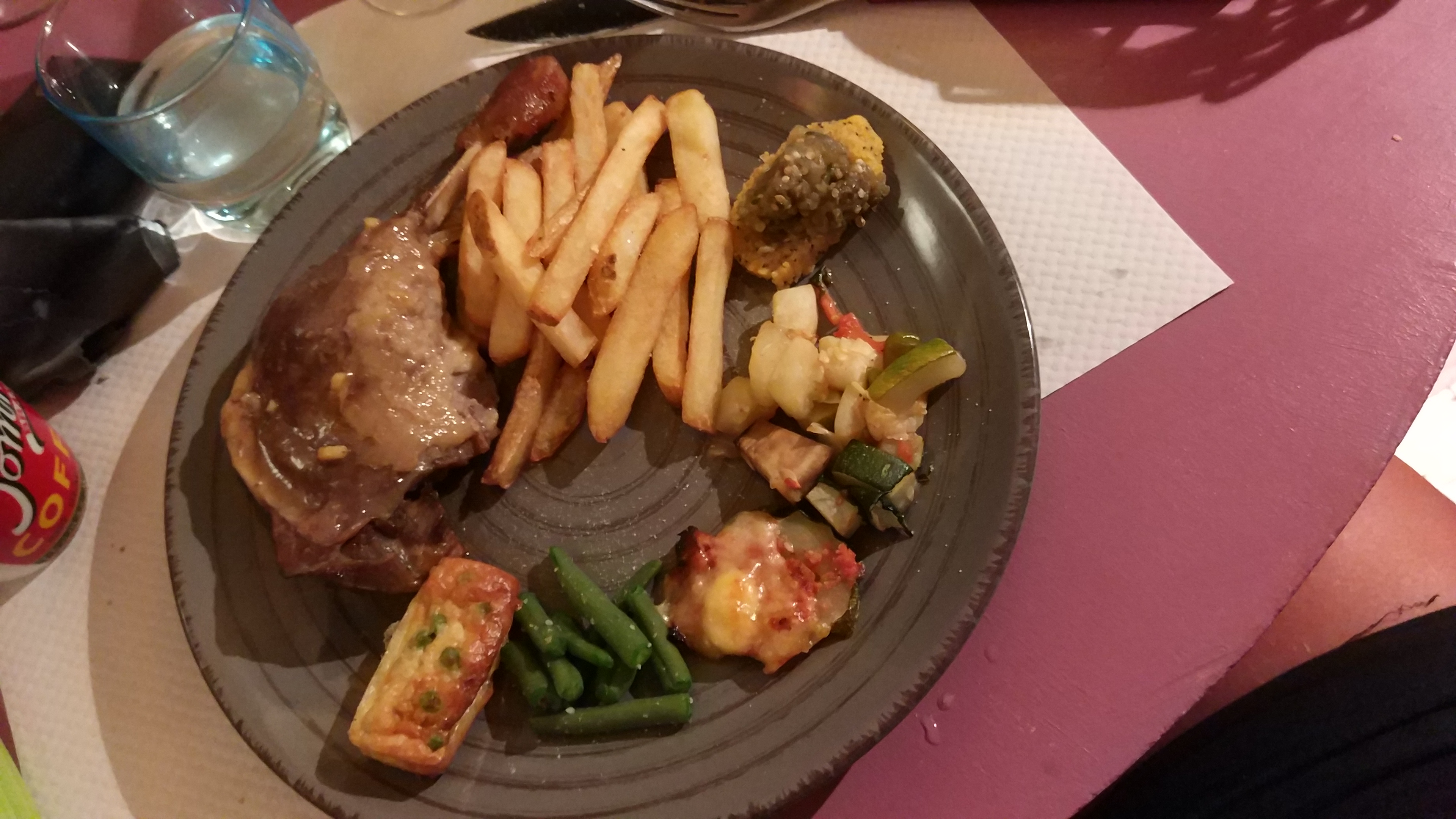 Entrée trop salée . Personnel agréable. Vin trop cher
