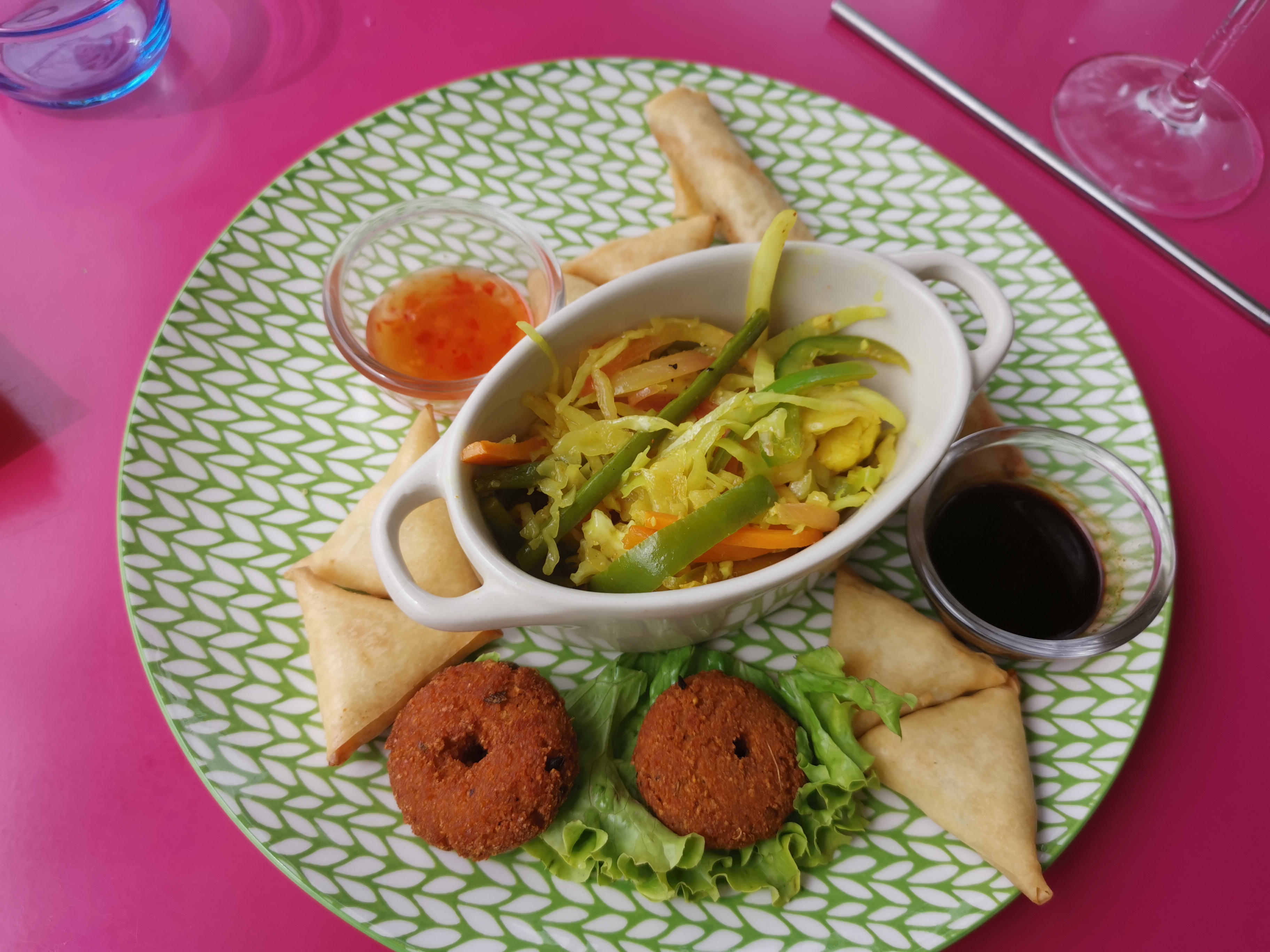 Très bonne adresse suggérée par notre hôte Muriel. Un mélange de cuisine traditionnelle avec une touche épicée de la Réunion. On a adoré.