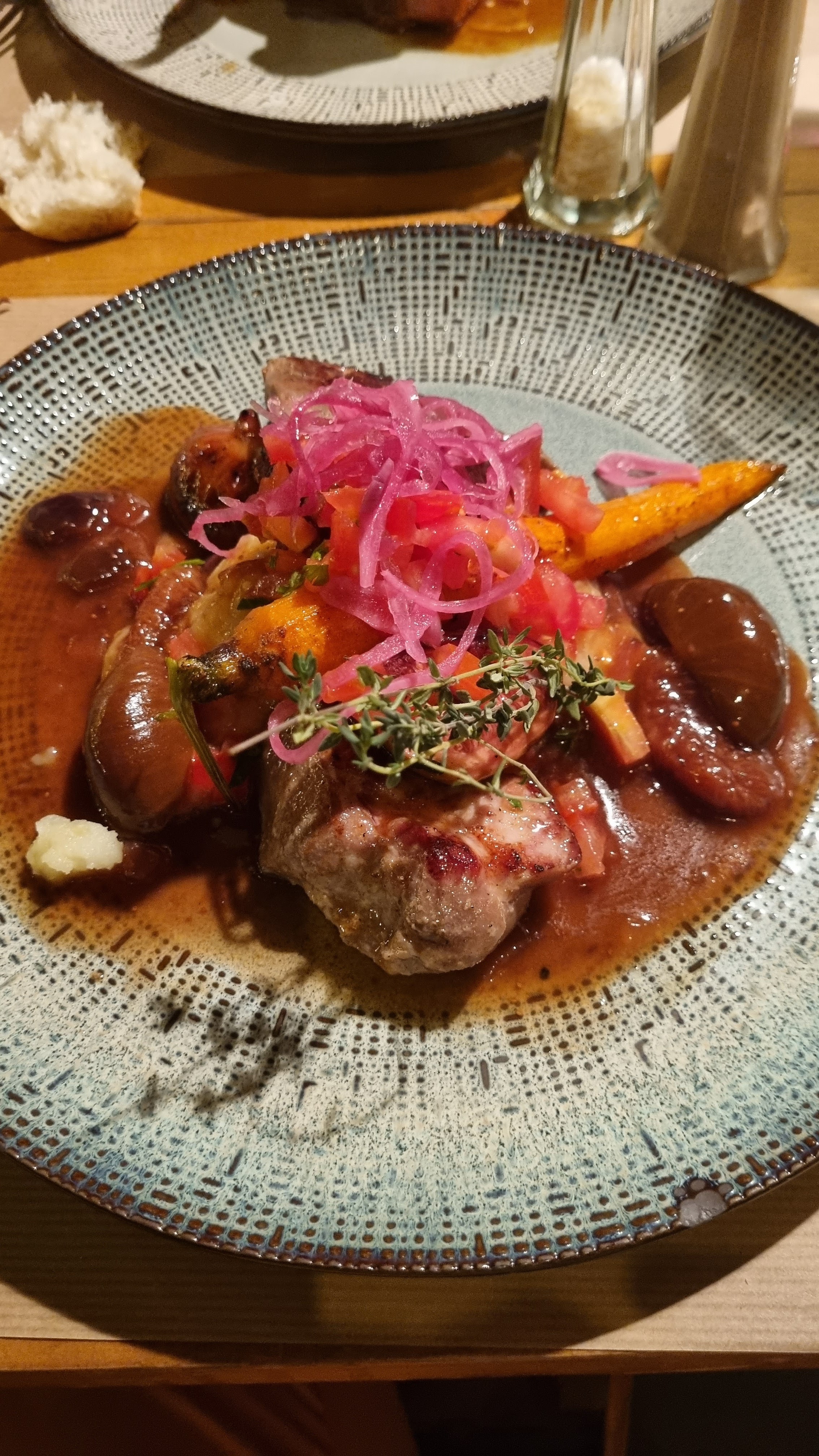 Nous sommes venus il y a 5 ans, rien n'a changé. Nourriture toujours fantastique. Pas une grande carte, 4 entrées, 3 plats principaux et environ 5 desserts. Mais cela contrôle les prix et maintient la qualité. Le filet mignon de porc était délicieux. J'ai arrêté de manger du porc depuis peu, car je le trouve fade. Pas ici... délicieux. Les enfants reçoivent une poitrine de poulet et des frites accompagnées d'un jus. La qualité du poulet est incroyable, si moelleuse et c'était comme du beurre à couper. Je n'ai rien à reprocher à cet endroit. Réservez à l'avance en ligne.