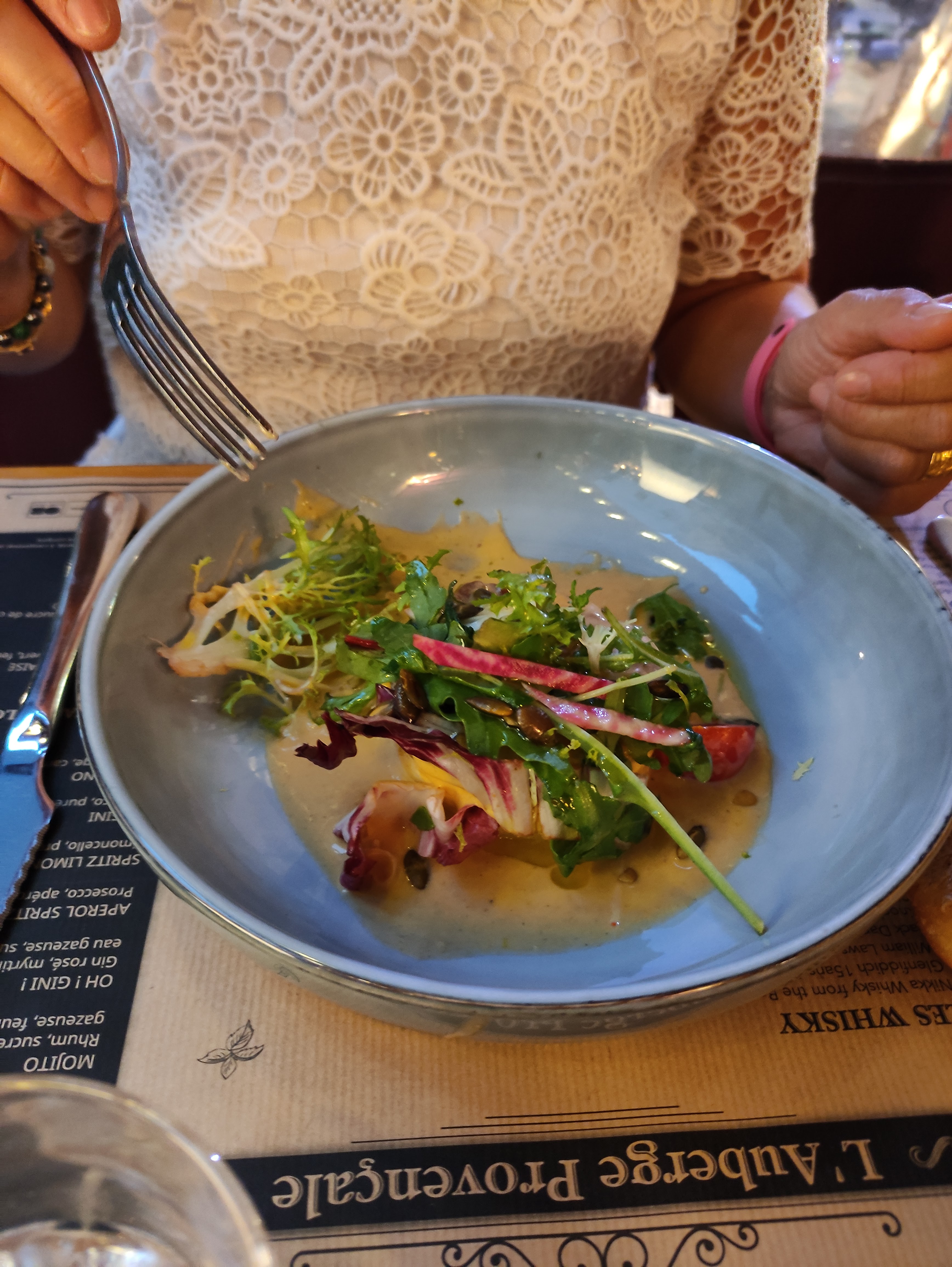 Une très bonne soirée à l'auberge provençale. Ambiance feutrée dans cette belle salle, un accueil plein de gentillesse et un service top, et une cuisine délicieuse pleine de saveurs nuancées. Des plats très bien présentés. On recommande ++++