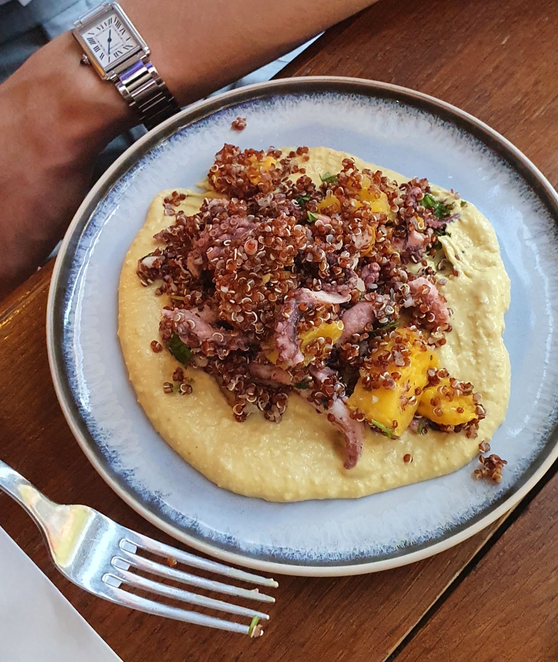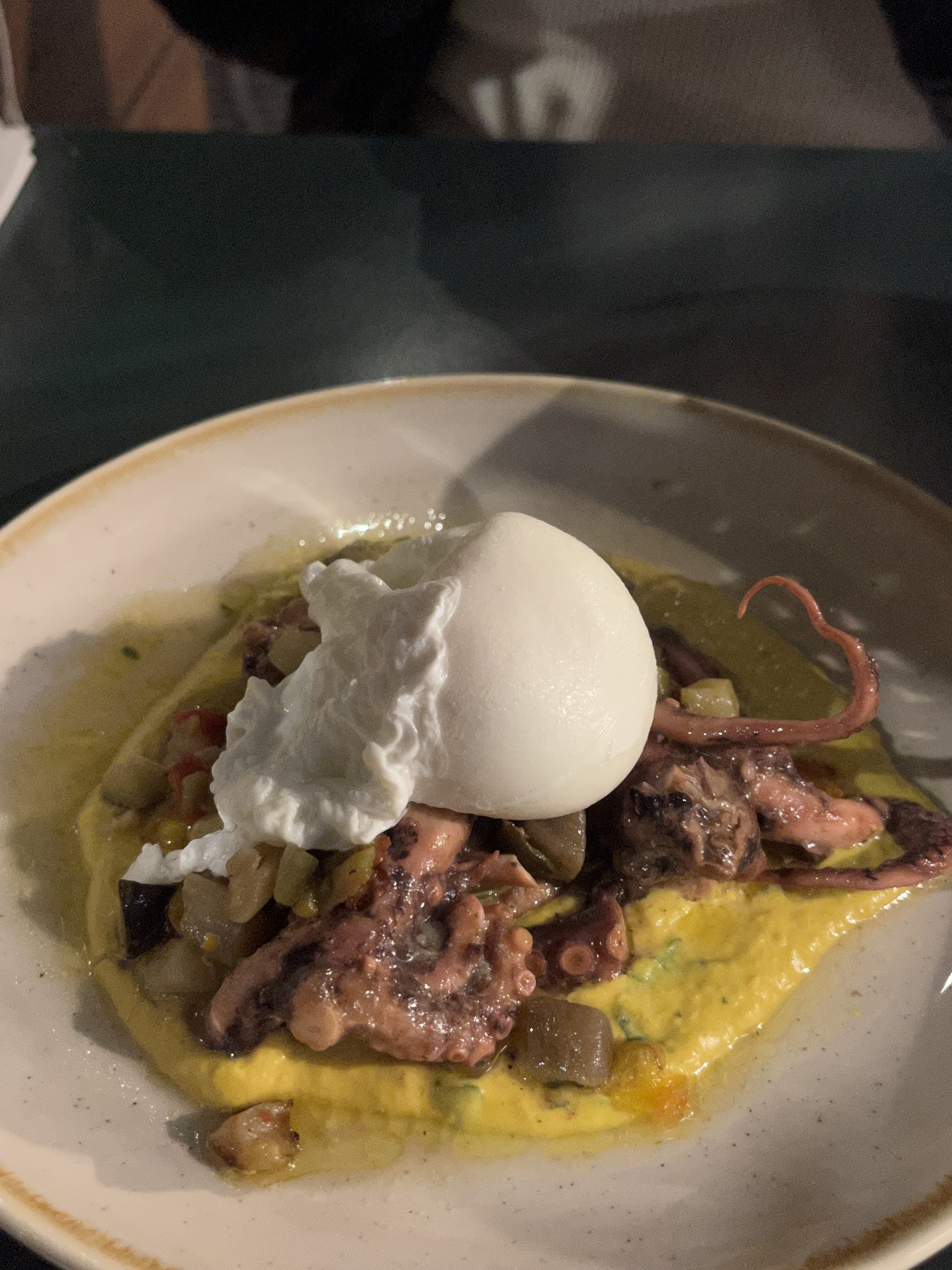 Restaurant à l'ambiance fraîche et conviviale, équipe sympathique, réactive et de bonne humeur Les plats sont bons, savoureux et généreux, Le poulpe grillé bon, juste un peu trop salé à notre goût, pareil pour l'os à moelle l'agneau était fondant, parfumé, c'était succulent Le homard bien juteux et très bon aussi, Un bon rapport qualité prix Une belle expérience, hâte de retourner afin de goûter les autres plats, qui avaient l'air bien gourmand