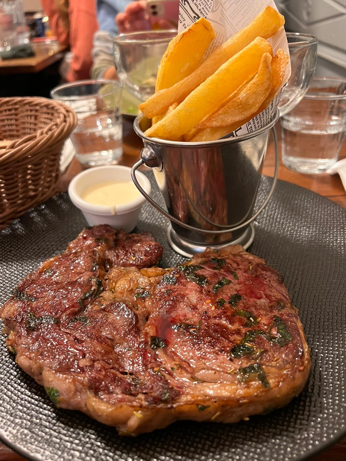 Superbe adresse que je vous conseille les yeux fermés ! Entrecôte marinée pendant 12h et frites fraîches faites maison excellentes. La souris d’agneau est succulente également ! En dessert je vous conseille l'omelette norvégienne, un must ! Une cuisine goûteuse, un lieu convivial, un personnel souriant et accueillant. Une adresse incontournable sur Paris !