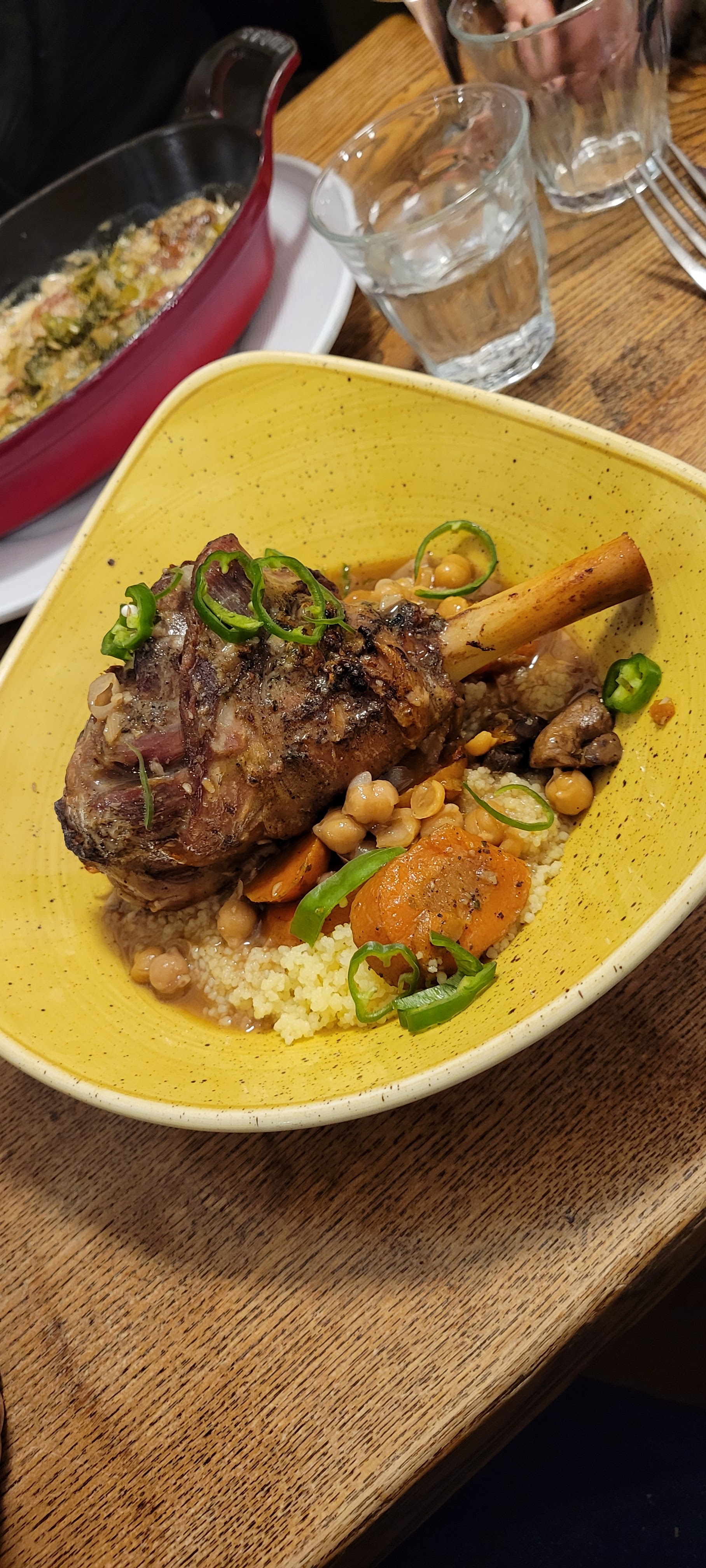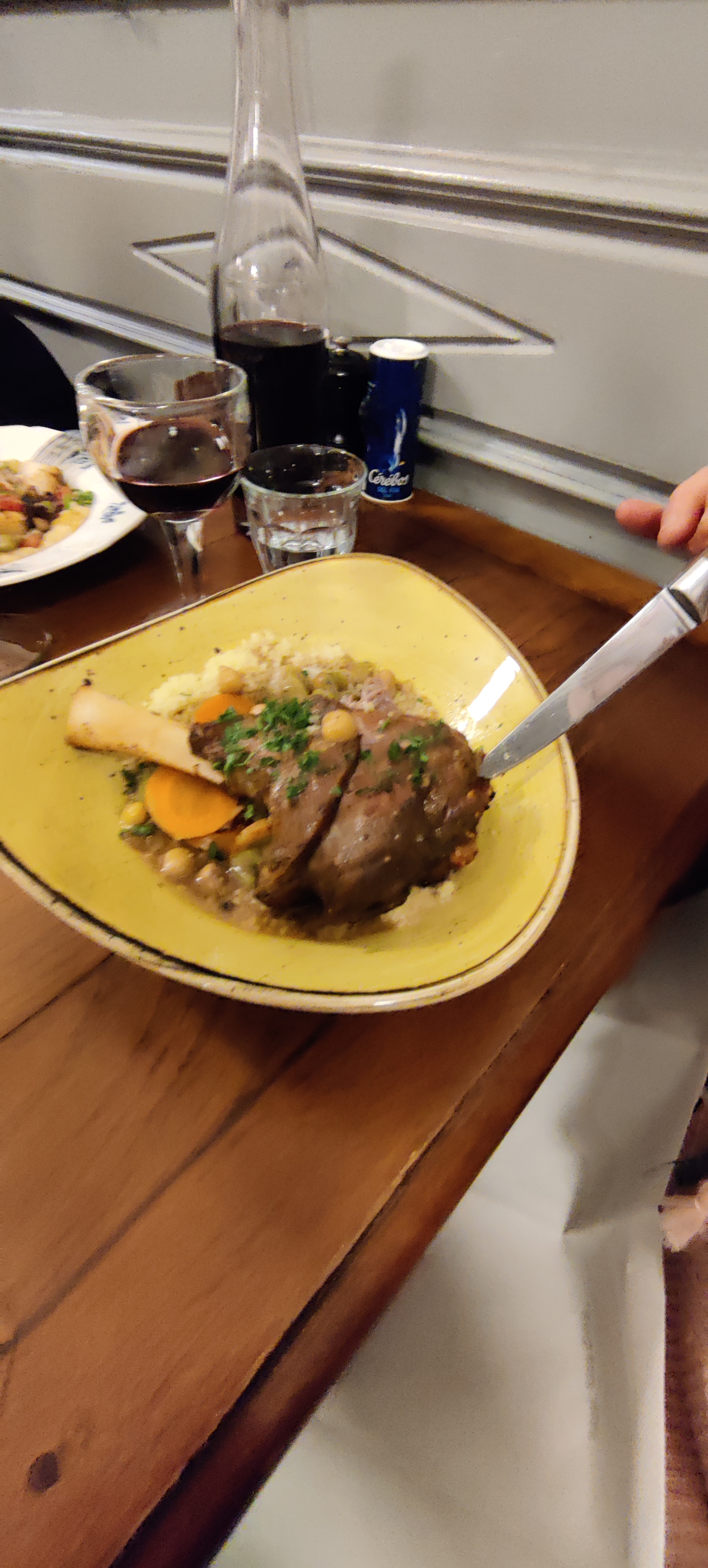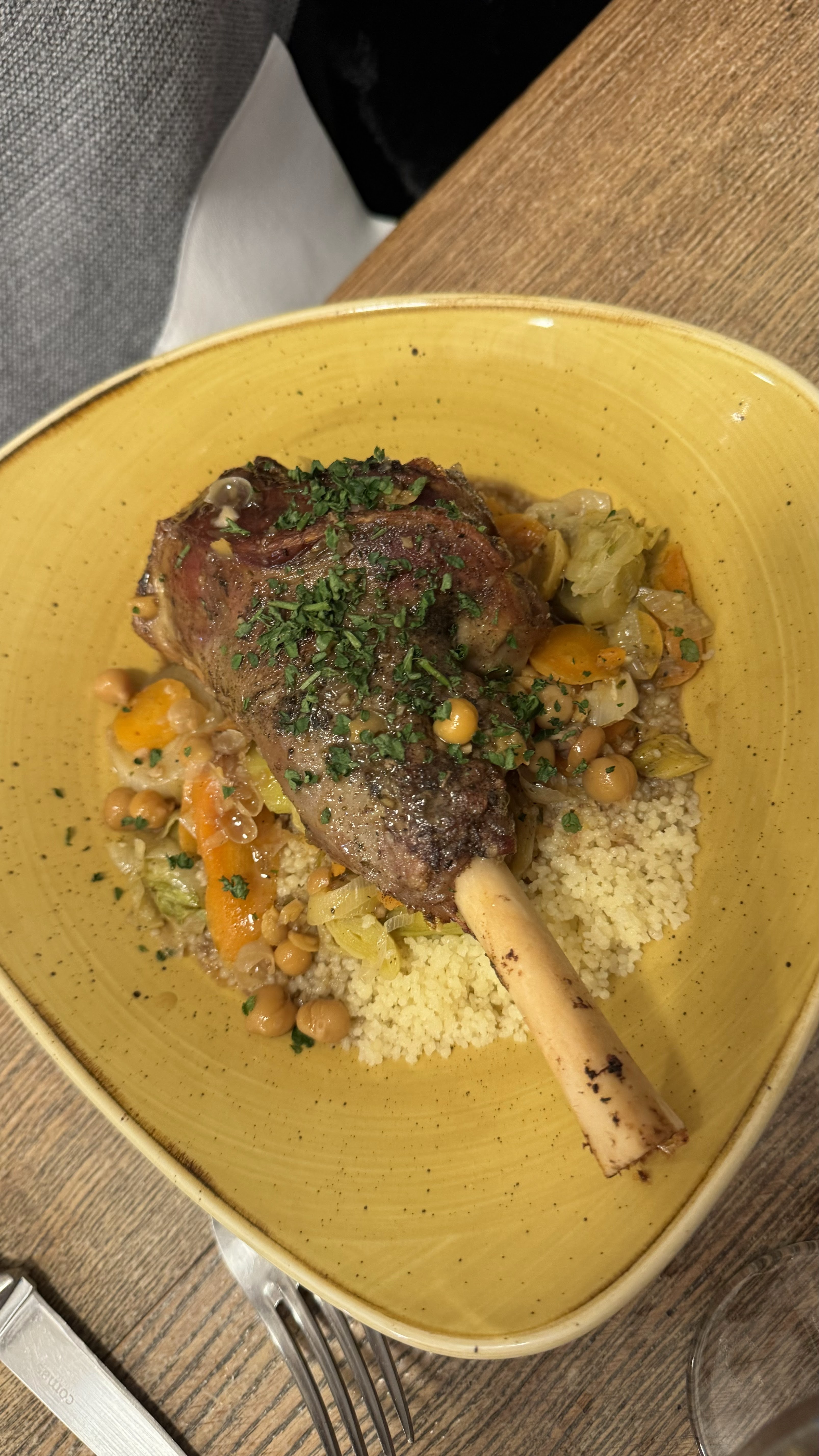 Nourriture délicieuse, personnel super accueillant! Il y avait le homard et les pâtes et mon ami avait l'agneau et le couscous c'était parfait. Léger et parfaitement assaisonné (norme européenne)