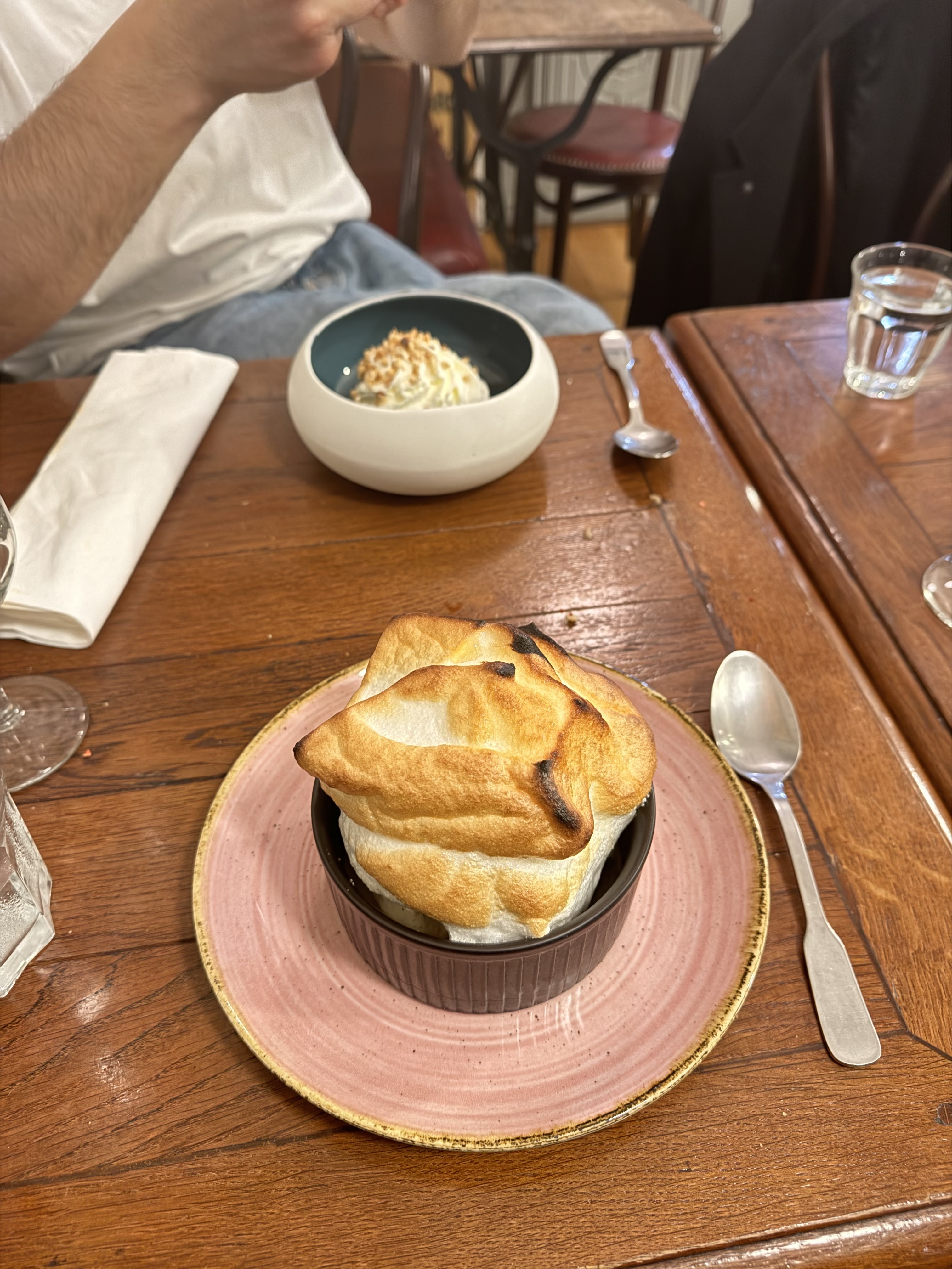 Petit restaurant dans Paris que je recommande à tous ! Un délice de l'entrée au dessert en passant par tout le personnel ! Et cerise sur le gâteau, une omelette norvégienne comme on en a jamais vu ailleurs 😋 C’est sur dès que nous repasserons par Paris, il s’agira de notre repère pour le déjeuner ! Je n’ai pas de mot ! Juste allez y les yeux fermés