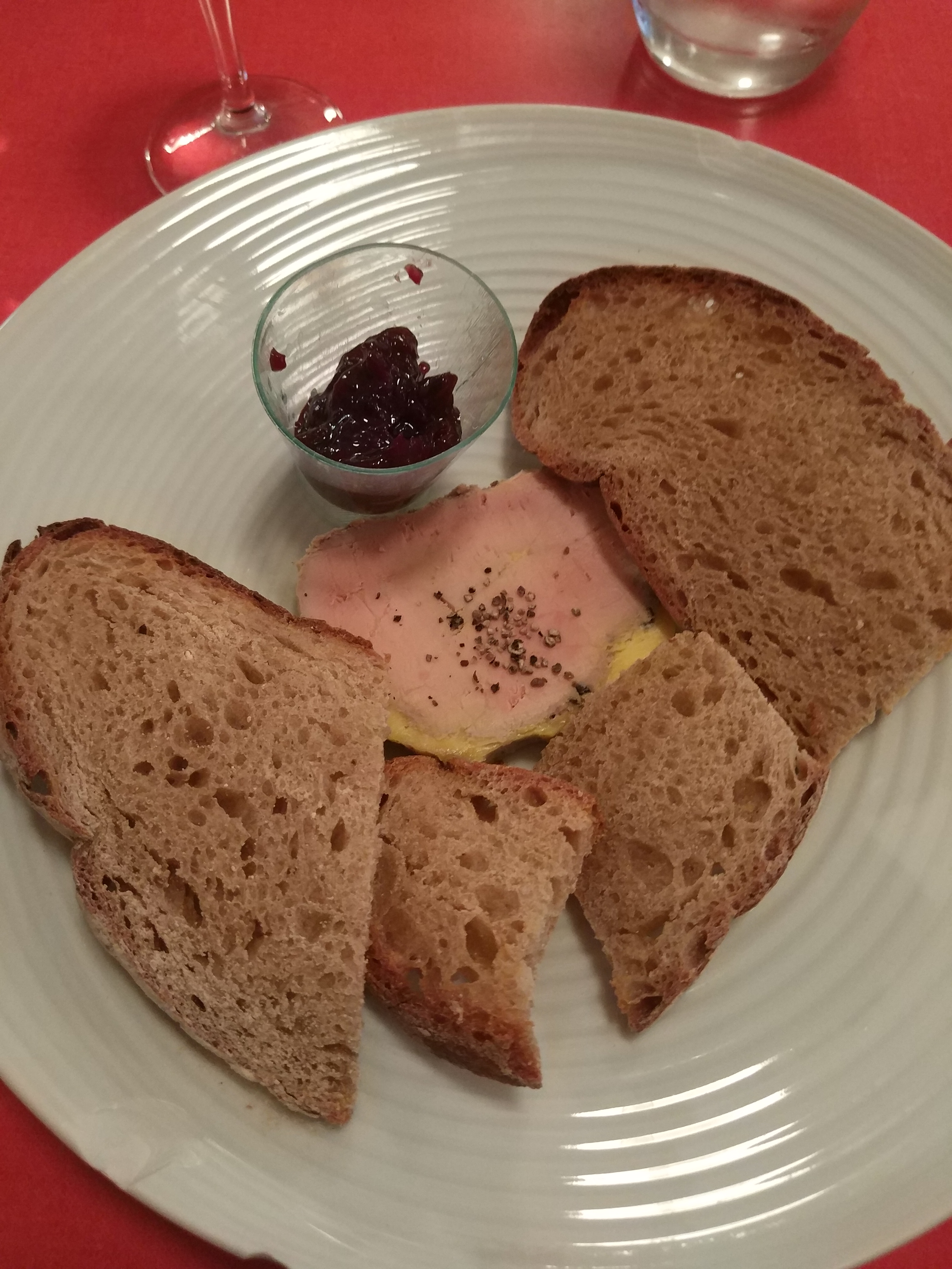 Découverte du jour… L’entrée au top à base de foie de volaille avec la petite salade et le plat , un délicieux Parmentier de canard Saint Chinian au pichet très bien.. On reviendra !