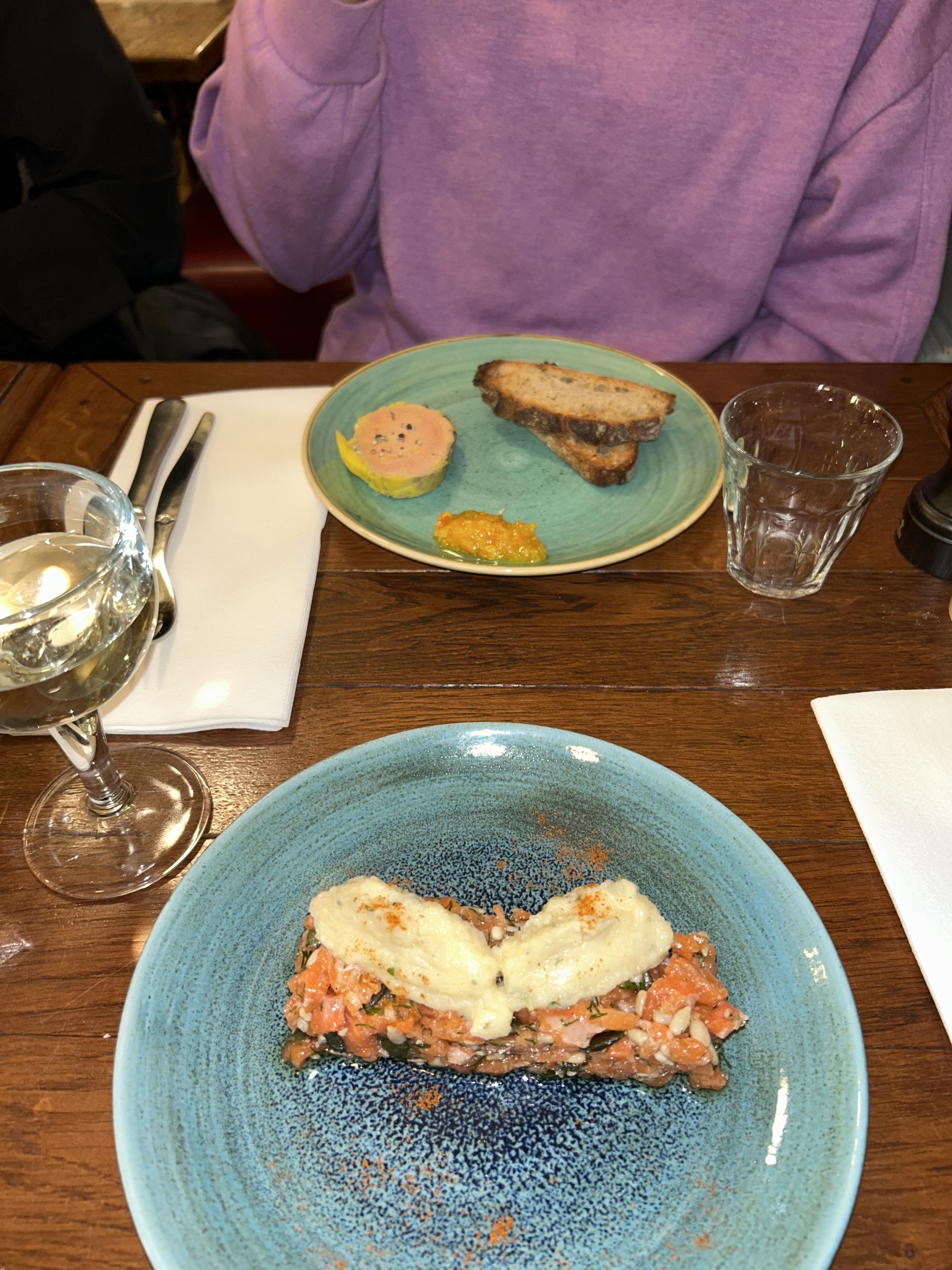 Le meilleur repas que j'ai eu à Paris, de loin. Appelé à l'avance pour un siège solo. Il y a eu un vin délicieux, le foie gras le plus incroyable et le magret de canard… Je penserai à ce magret de canard pour le reste de ma vie, ou jusqu'à ce que j'y revienne pour en redemander 😅. Il n'y avait pas de place pour le dessert mais ils avaient l'air super. Pas du tout touristique, appartenant à des frères jumeaux locaux qui étaient si gentils et amicaux avec moi. Merci!!!