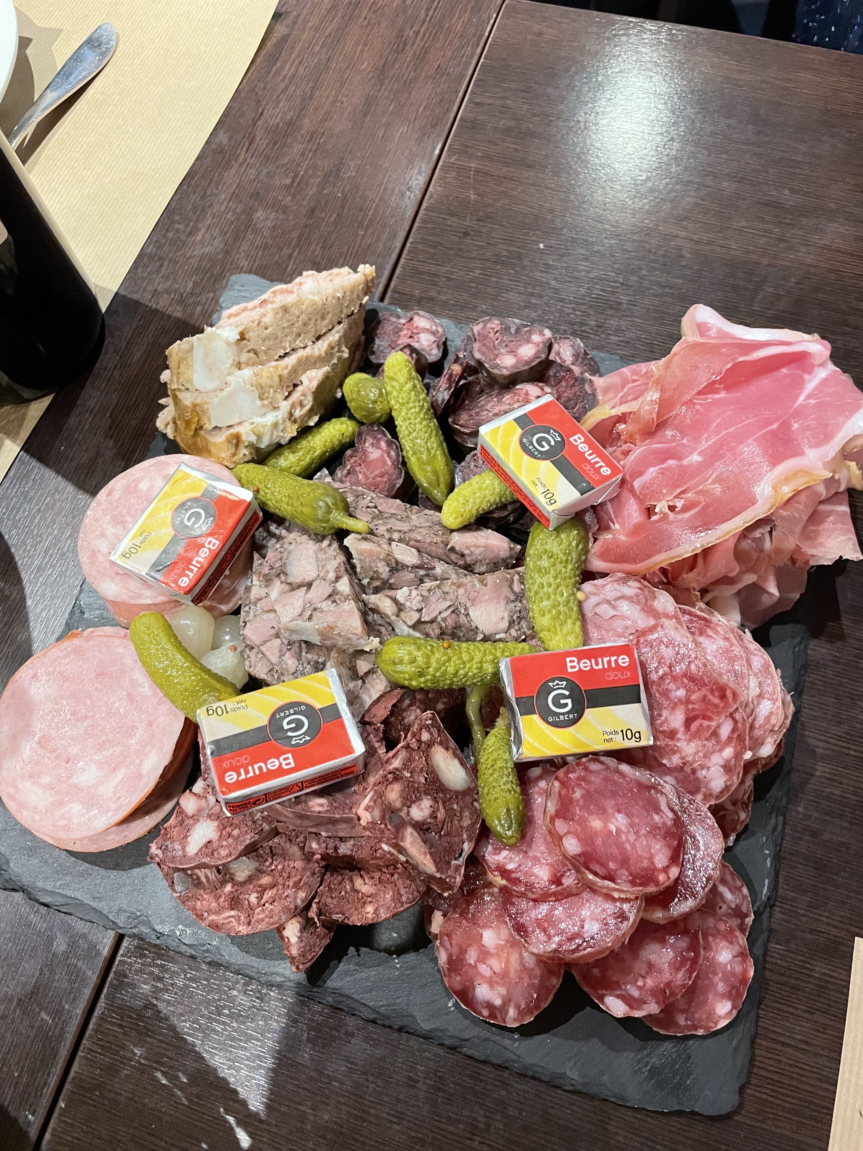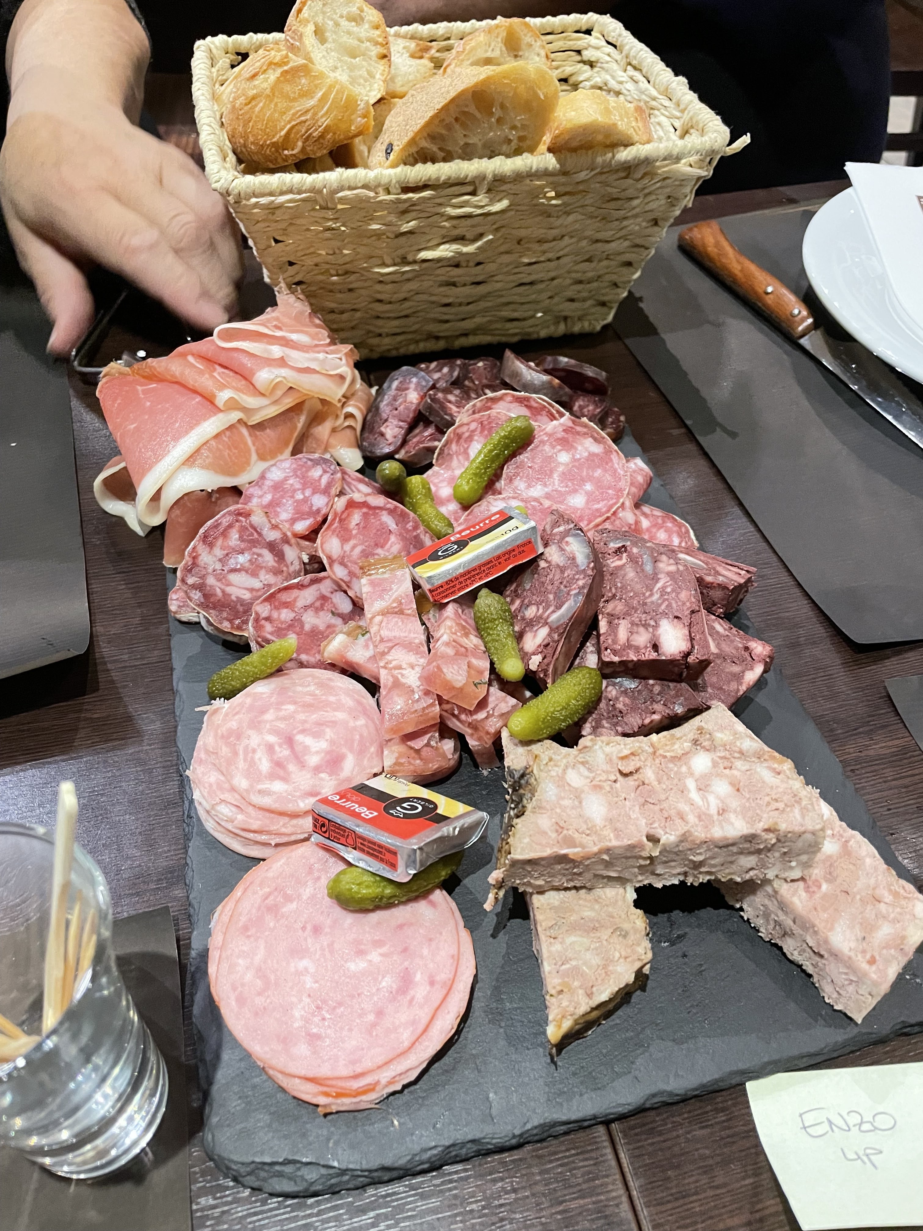 Pour les gourmands...à volonté...charcuterie excellente et pain délicieux...service un tout petit peu long mais il y avait du monde donc compréhensible...Bonne adresse...allez y les yeux fermés