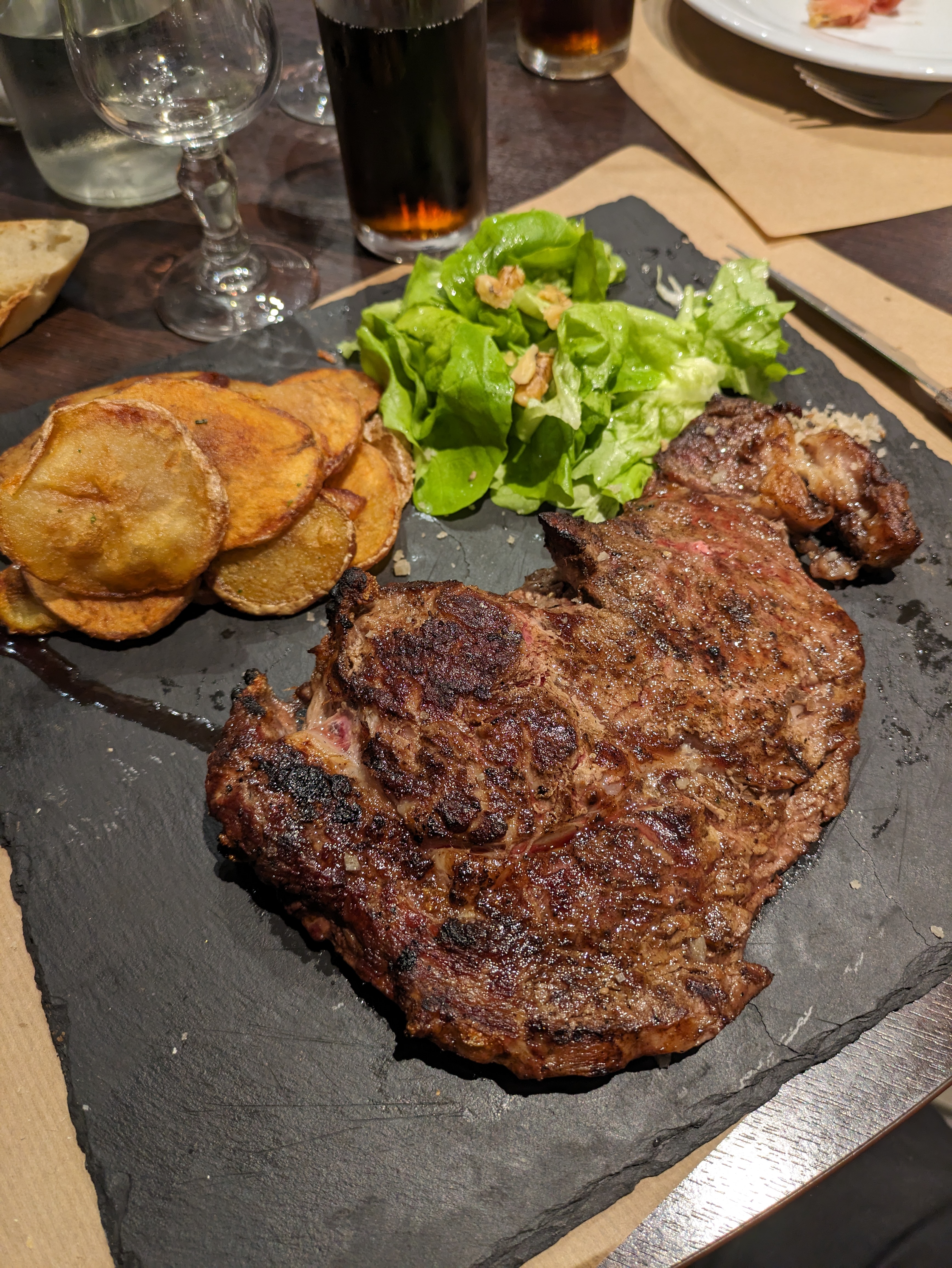 Bon moment passé entre amis. Menus copieux. Plus de mal à finir aujourd'hui qu'à 20 ans! Bonne viande.