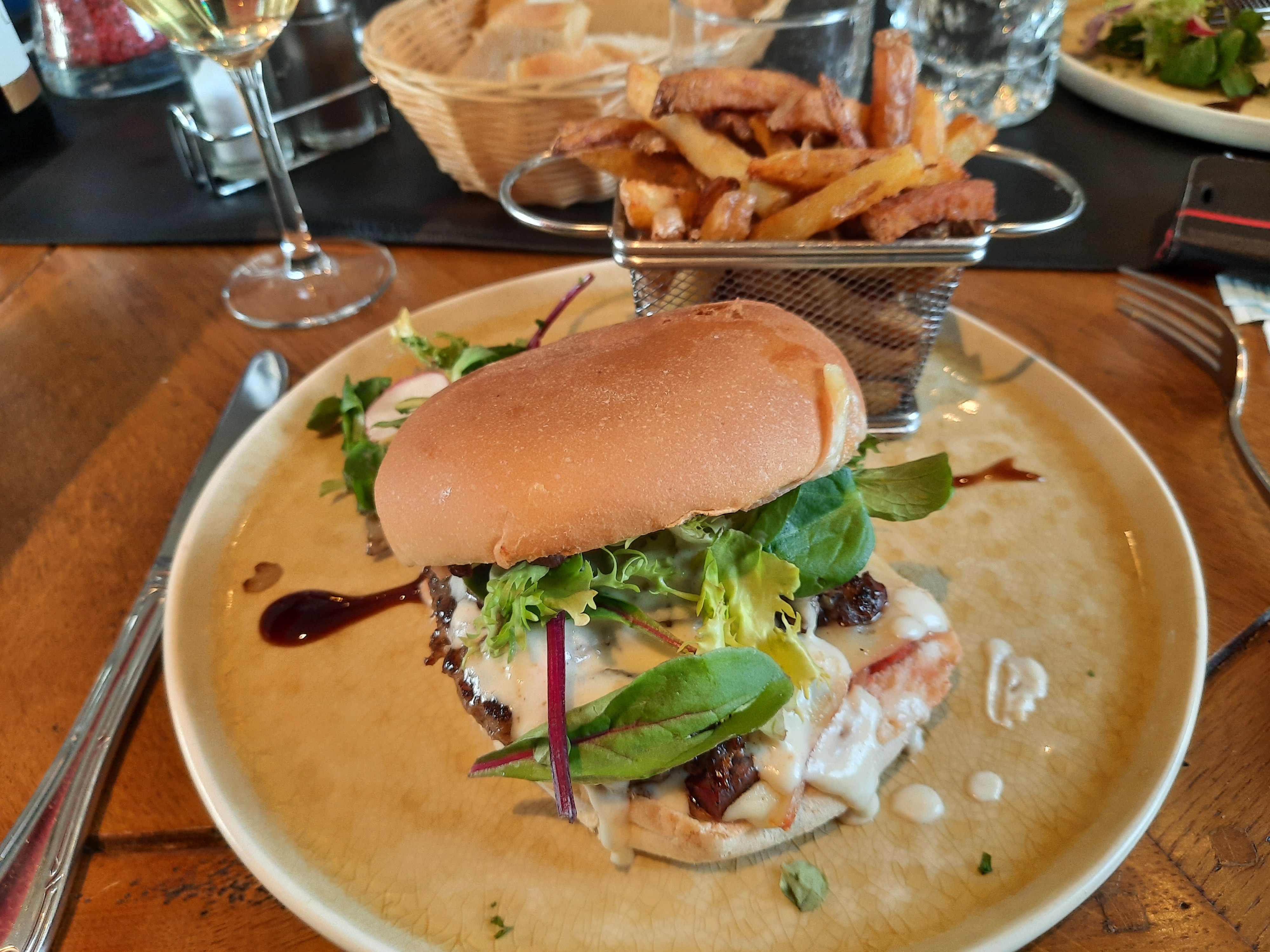 Restaurant bistronomique , très bon, à la carte un peu cher , mais menu pas cher, et il y a aussi des Burgers (mon mari a bien aimé avec de bonnes frites) des salades. Mou j'ai pris canard avec pommes de terre salardaises,très bon. Le personnel et le patron très aimable et très gentil.