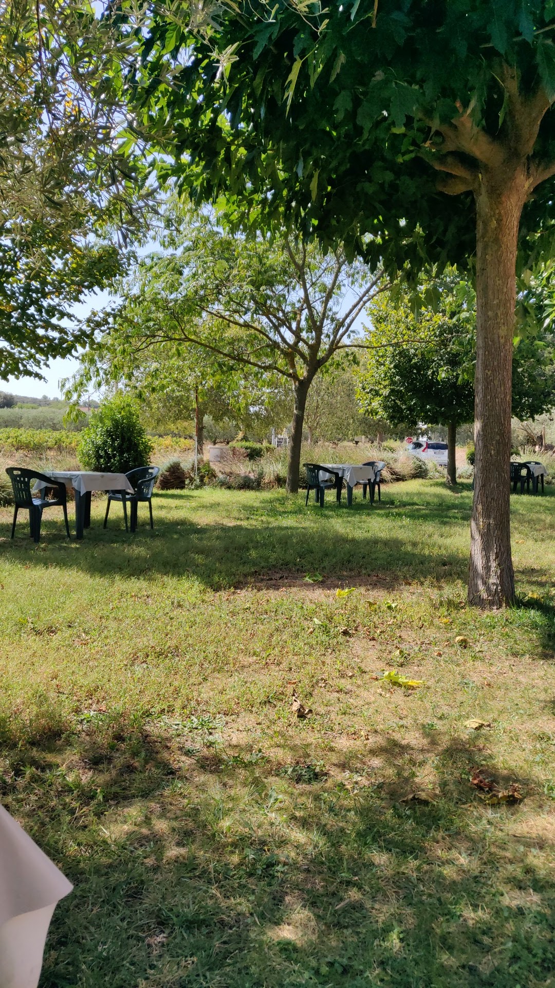 Nous avons réservé une table pour 2 personnes dans cet établissement et sur recommandation d'amis. Malgré notre retard, nous avons été très bien accueillis avec un emplacement charmant à l'ombre des arbres et face aux vignes. Nous avons passé un moment extra! La carte est simple mais il y en a pour tous les goûts. Vincent, le cuisinier est venu nous voir et nous avons partagé un très bon moment ! Concernant le repas lui-même et bien c'est frais, généreux et plein de saveurs. Merci encore pour cet accueil et cet excellent moment passé dans votre établissement ! Nous recommadons vivement pour repas à 2 jusqu'aux repas groupés ou autres prestations envisageables dans ce lieu unique !