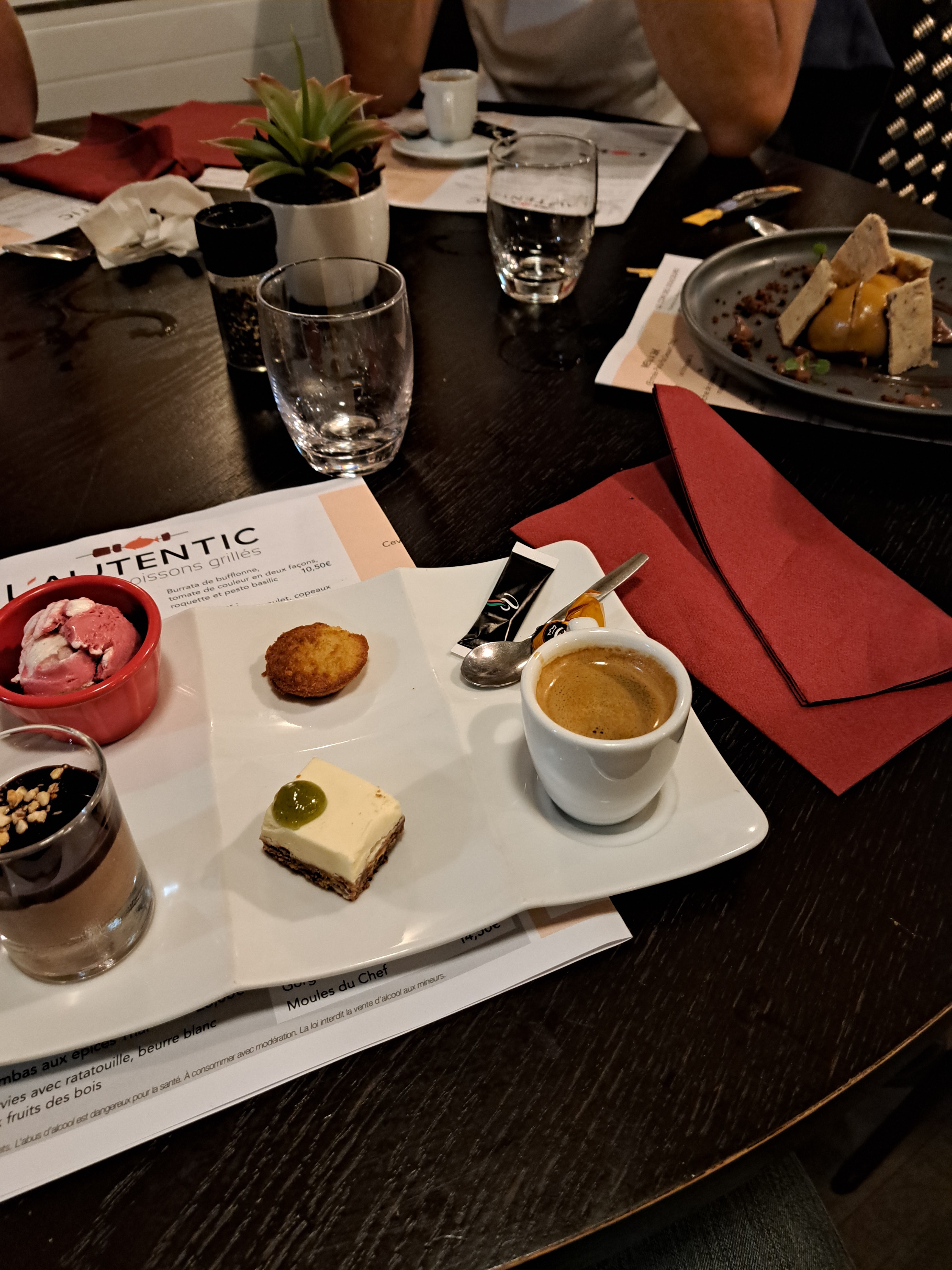 D'abord on est bien accueillis. Nous voulions des moules, nous n'avons pas été déçus. Un café gourmand avec plein de petits choix savoureux. En terrasse, vue sur le port de plaisance. On aime.