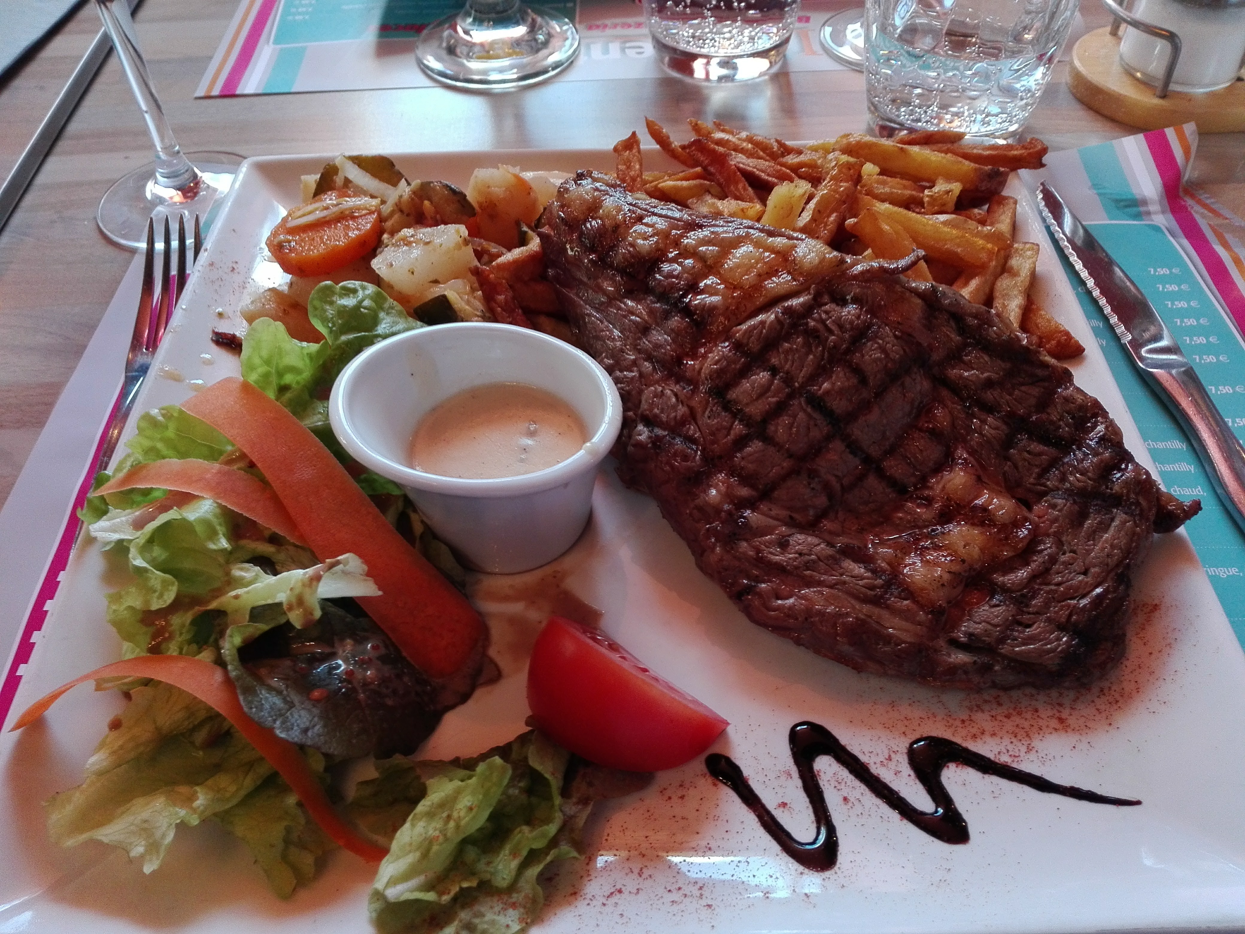J'y ai mangé deux fois avec des collègues la formule plat dessert est très intéressante l viande était exquise pour le reste c'était correct. La serveuse est sèche mais dans l'ensemble rien à dire