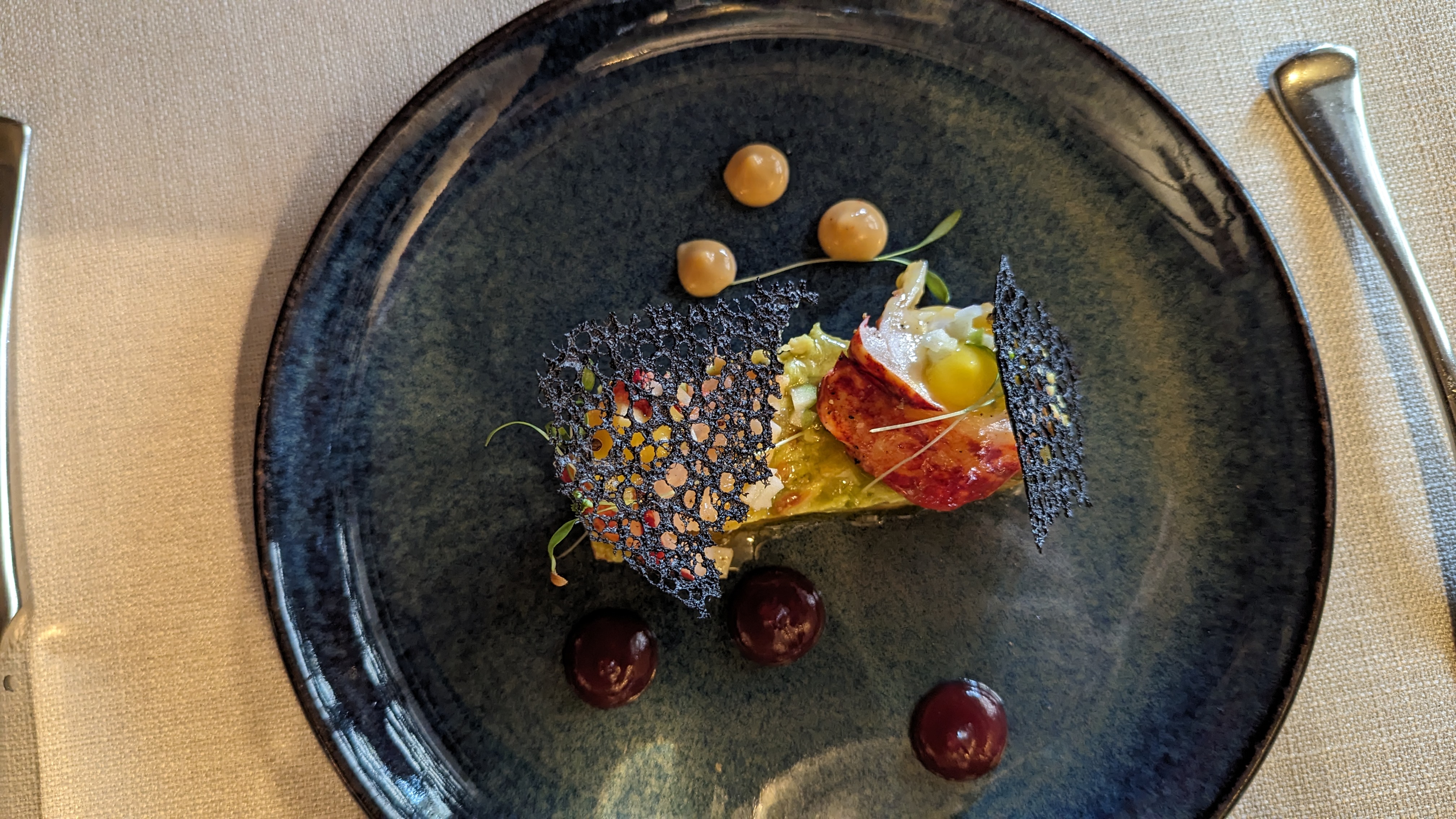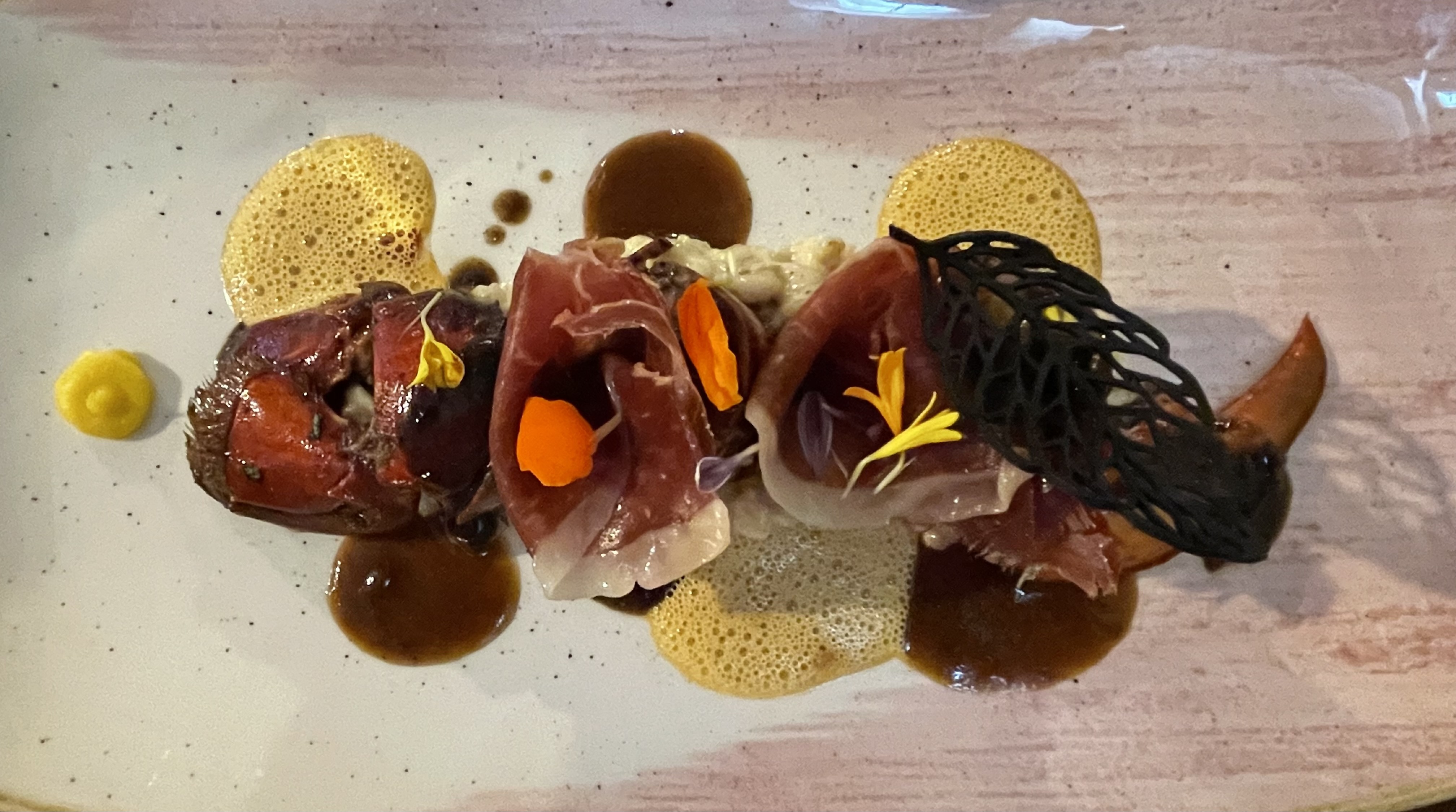 Ne vous fiez pas à l'ambiance du lieu, le menu Homard est à tomber, un délice du début à la fin, mais quel travail dans l'assiette, et dans la bouche je ne vous en parle même pas. Incroyable découverte de saveur. Merci