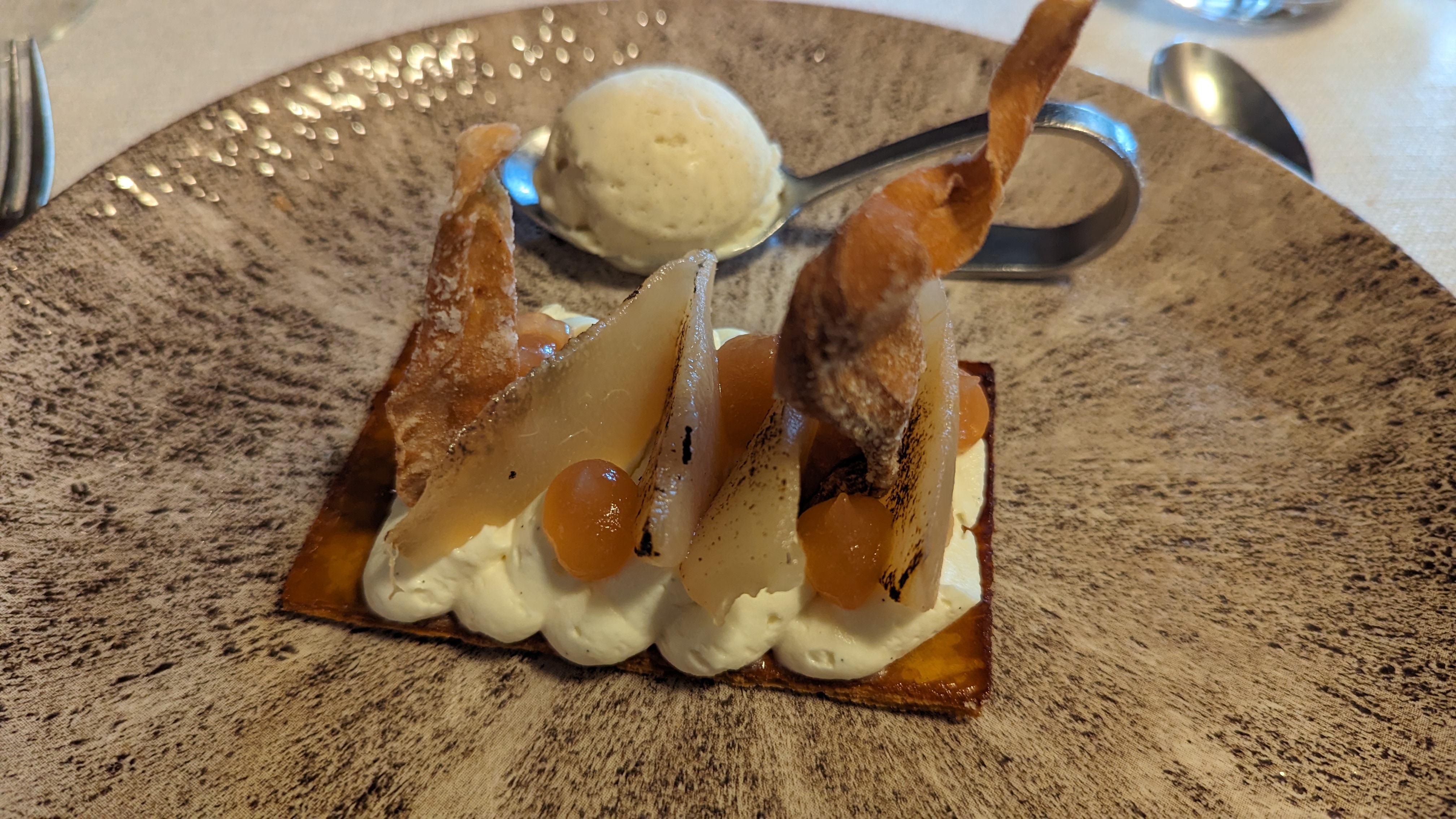Excellent au niveau de l'assiette... mais le manque de propreté du tablier du chef et de la camionnette transportant des desserts depuis la cuisine jusque ? me font me poser qqu questions sur l'hygiène... quel dommage.