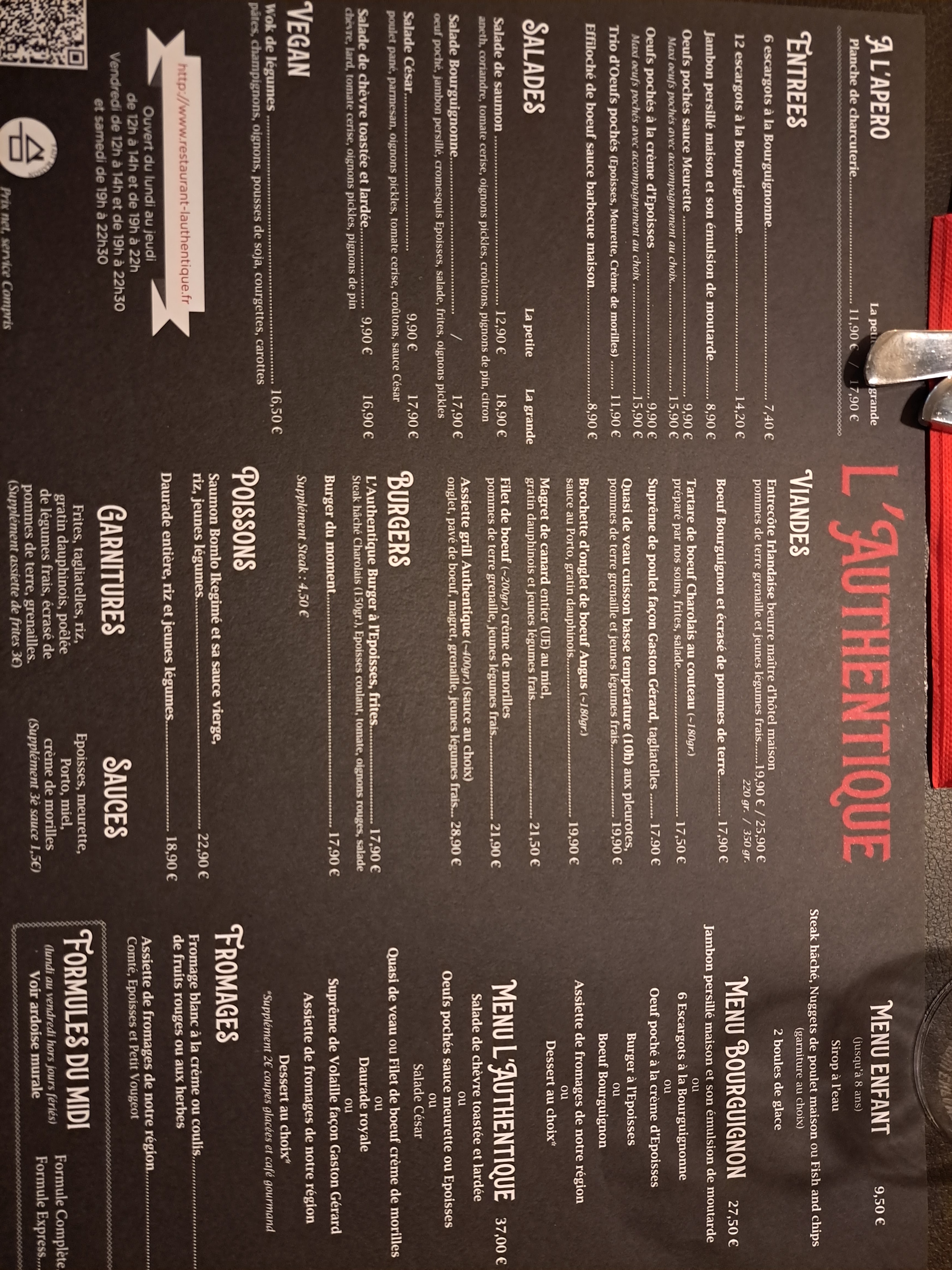 Première fois a l'Authentique! Accueil super, service rapide et équipe très sympa, les plats sont bien présentés et généreux (et super bon😁) Bon rapport qualité-prix. On a passé un bon moment! Nous reviendrons 😁😁😁