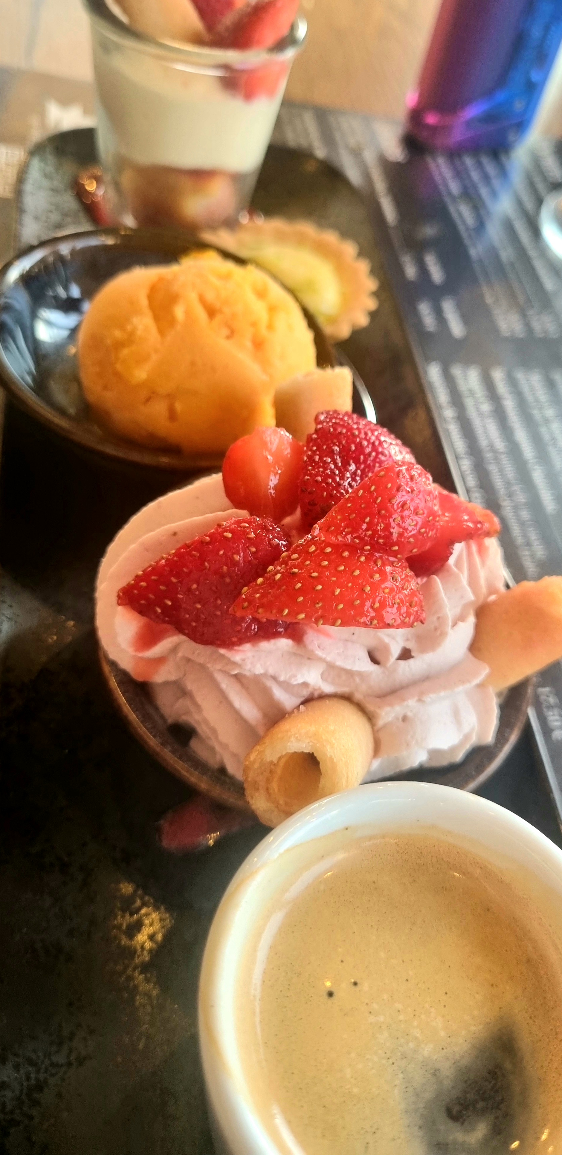 Faut pas être pressé ! D'autre personnes servies avant nous. 39 minutes pour avoir un mini café gourmand. Sérieux manque d'organisation. Cerise sur le gâteau il faut attendre 19 personnes pour payer à l'unique caisse.