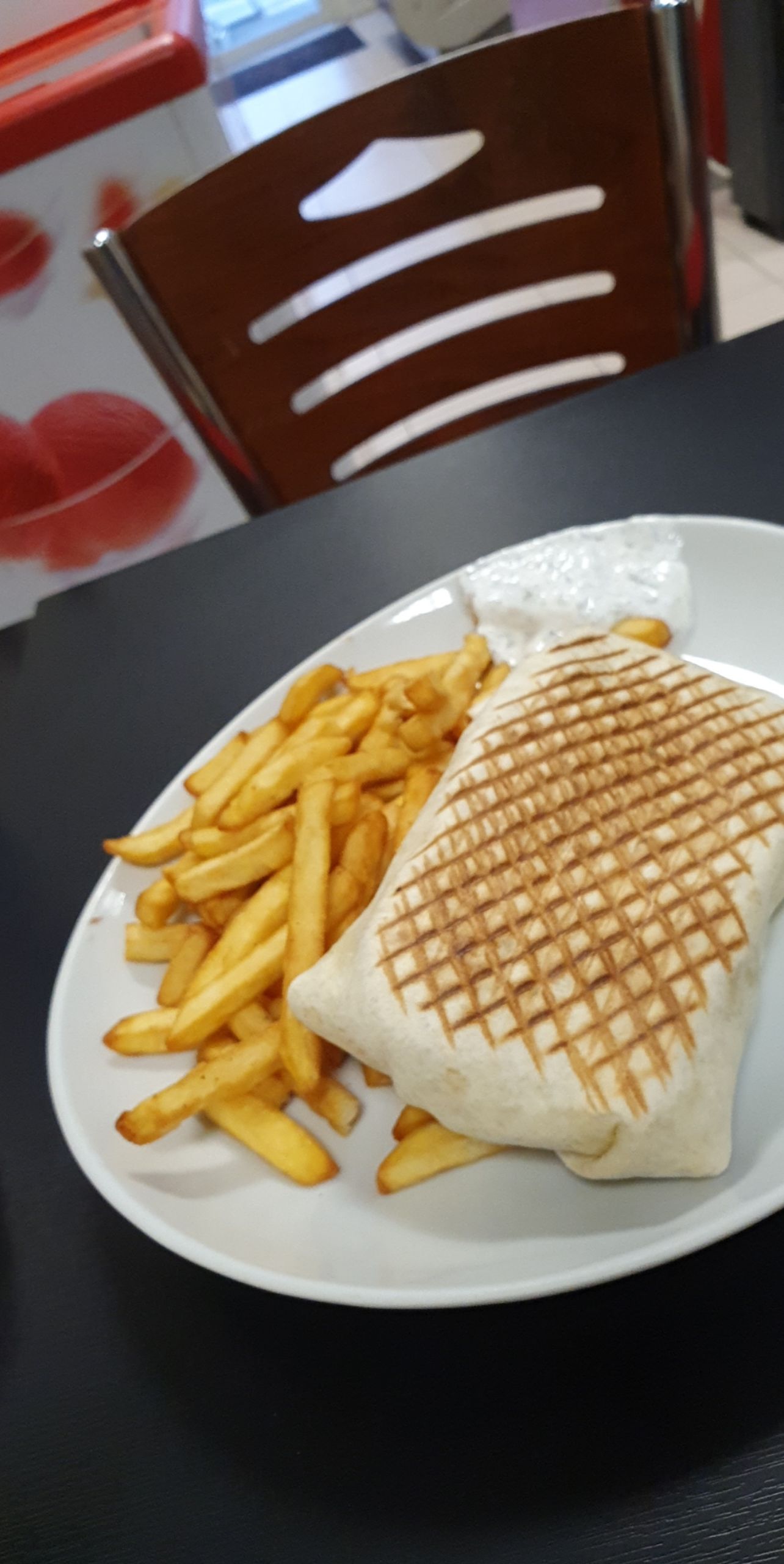 Bon accueil salle propre paraît petite de l'extérieur mais beaucoup de place même pour y rester un moment. Bon keebab