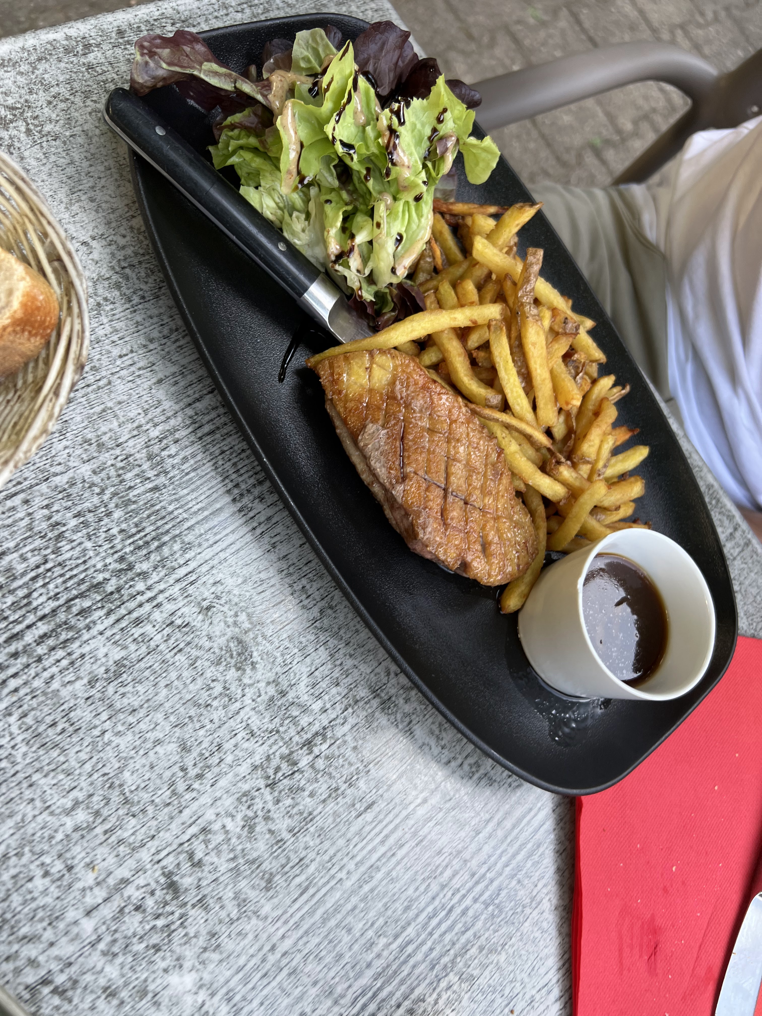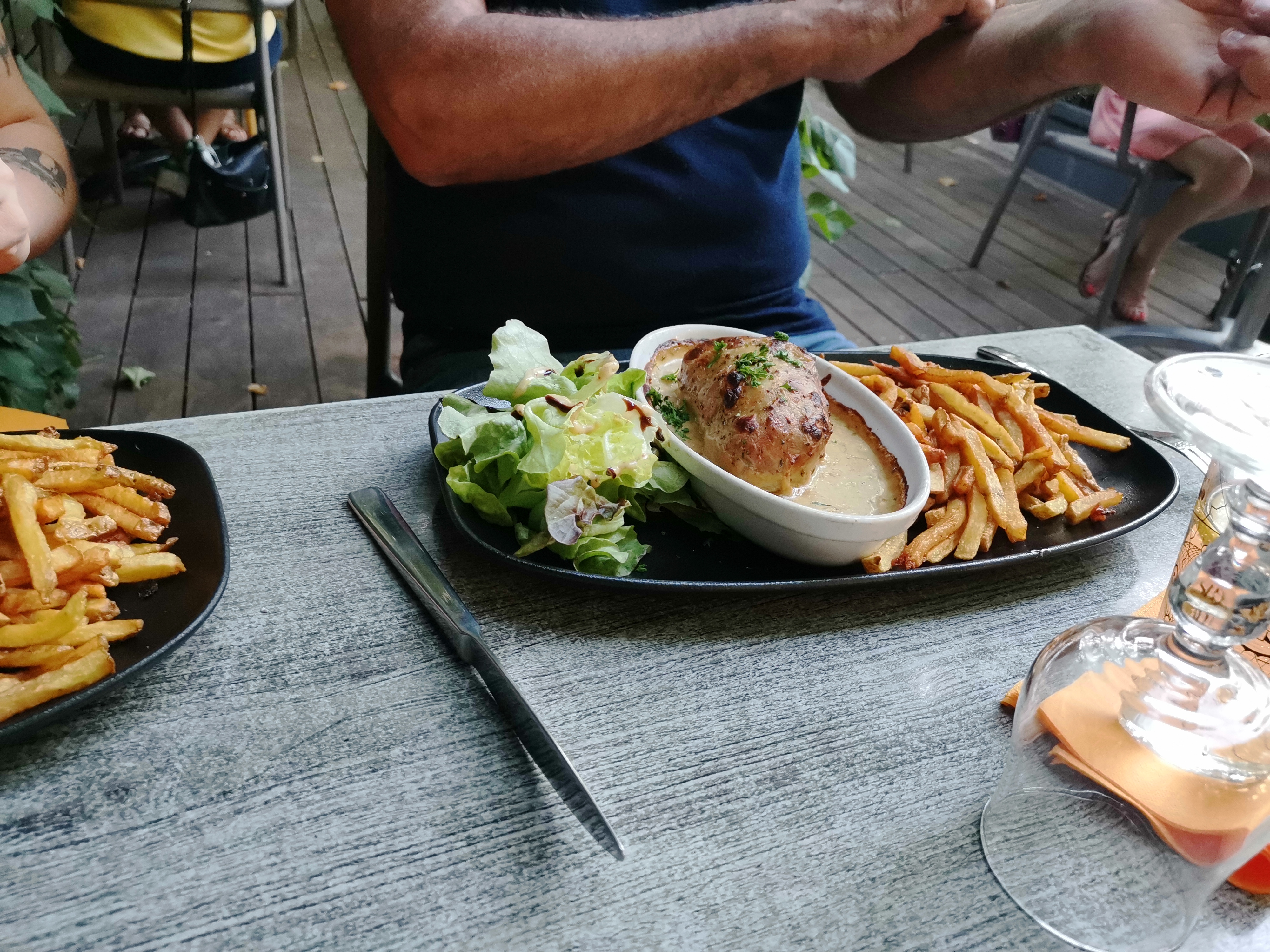 terrasse très agreable, mais attente interminable. 3h pour arriver au bout du déjeuner . Un menu offert sur les trois pour s'excuser mais programme du dimanche après midi chamboulé à cause de cette attente. Menu unique pourtant (fête des mères) qui doit normalement faciliter le service ? Il est vrai qu'il n'y avait plus l'un des deux choix du menu alors que nous somme arrivé à 12h30 et ils ont improvisé à la place du magret burger ou côte de boeuf. Les frites sont excellentes, le reste est inégal mais correct pour le prix.