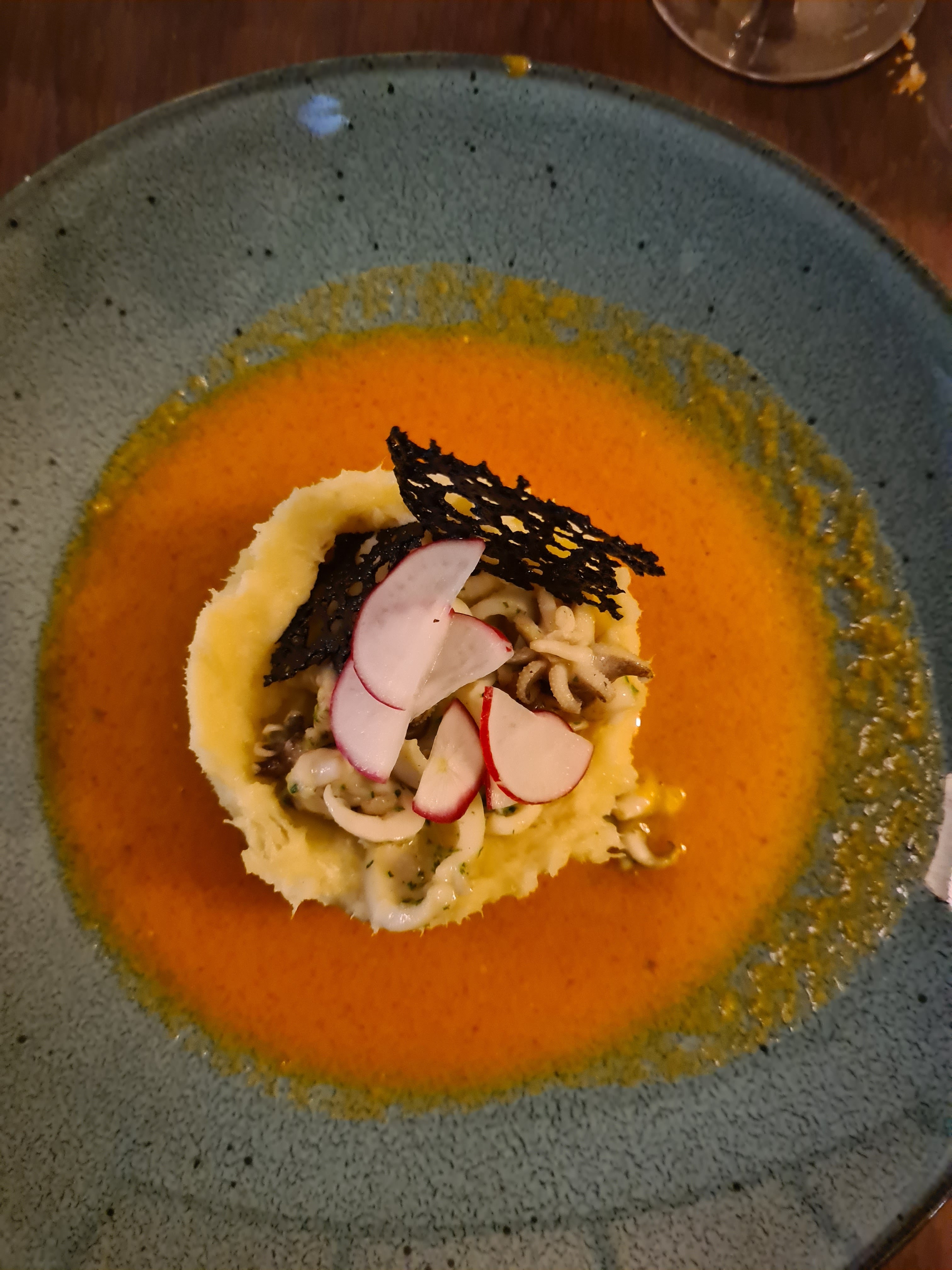 Très beau cadre, un très beau dressage et une bonne explication des produits dans les assiettes. Le rapport qualité prix est très bien ! C’est très copieux et très bon. Le seul petit truc à redire, c’est le temps d’attente entres les plats qui parfois peut être un peu long..