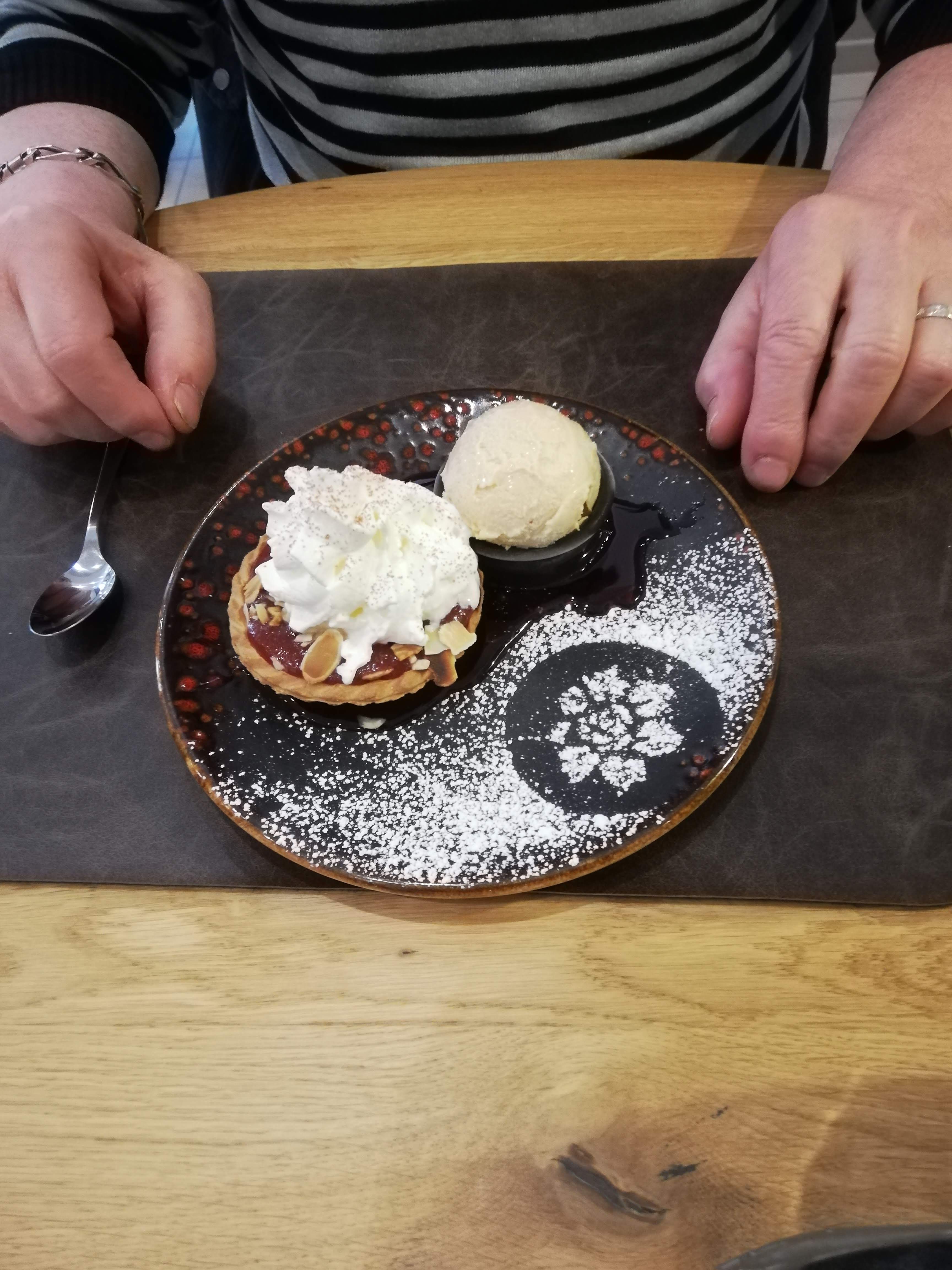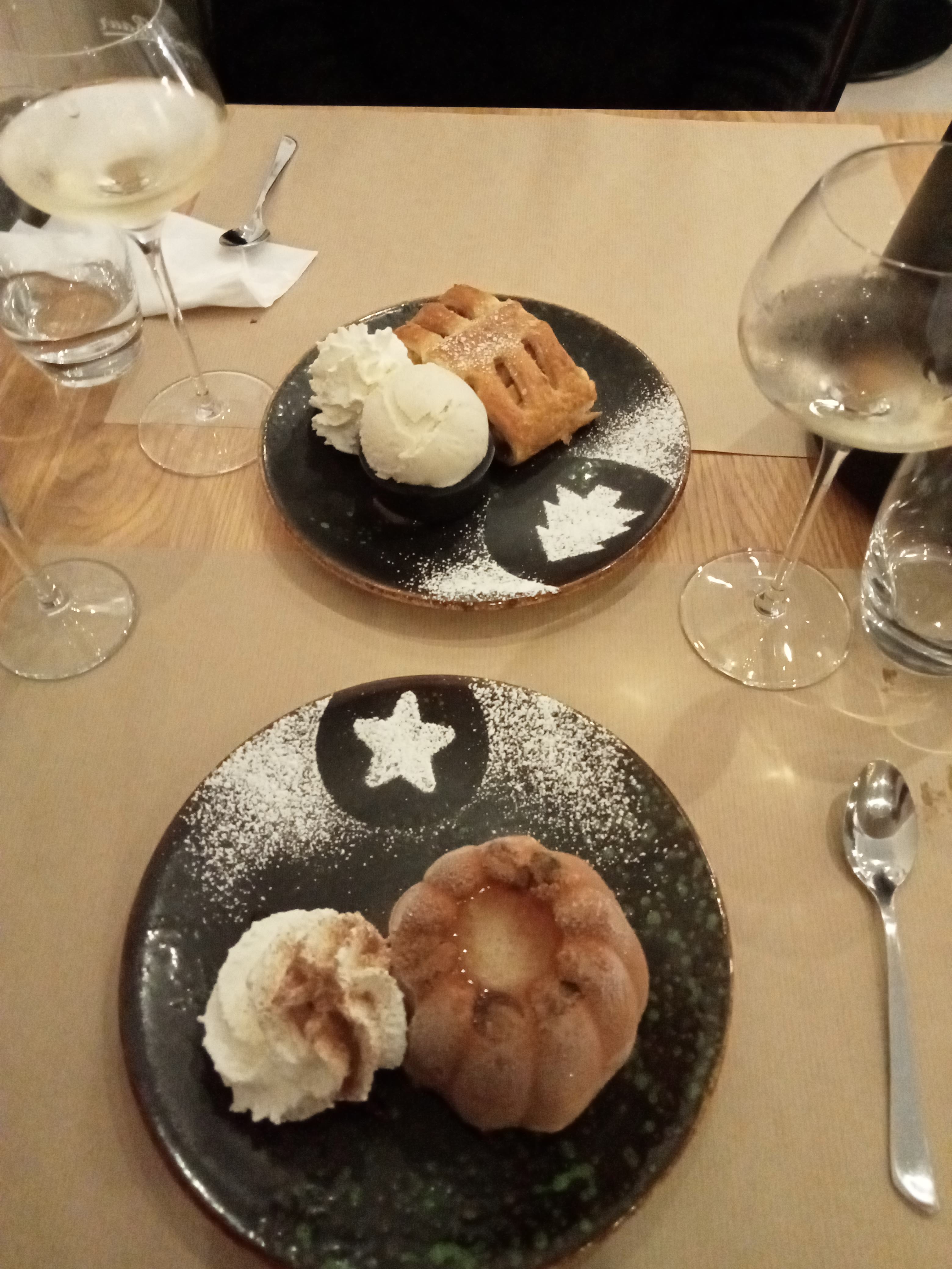 Belle découverte. Salade aux spätzles. Tarte flambée. Strudle aux pommes. Glaces. Tout était excellent ! 😋 Serveuses très sympathiques. Je recommande les yeux fermées.