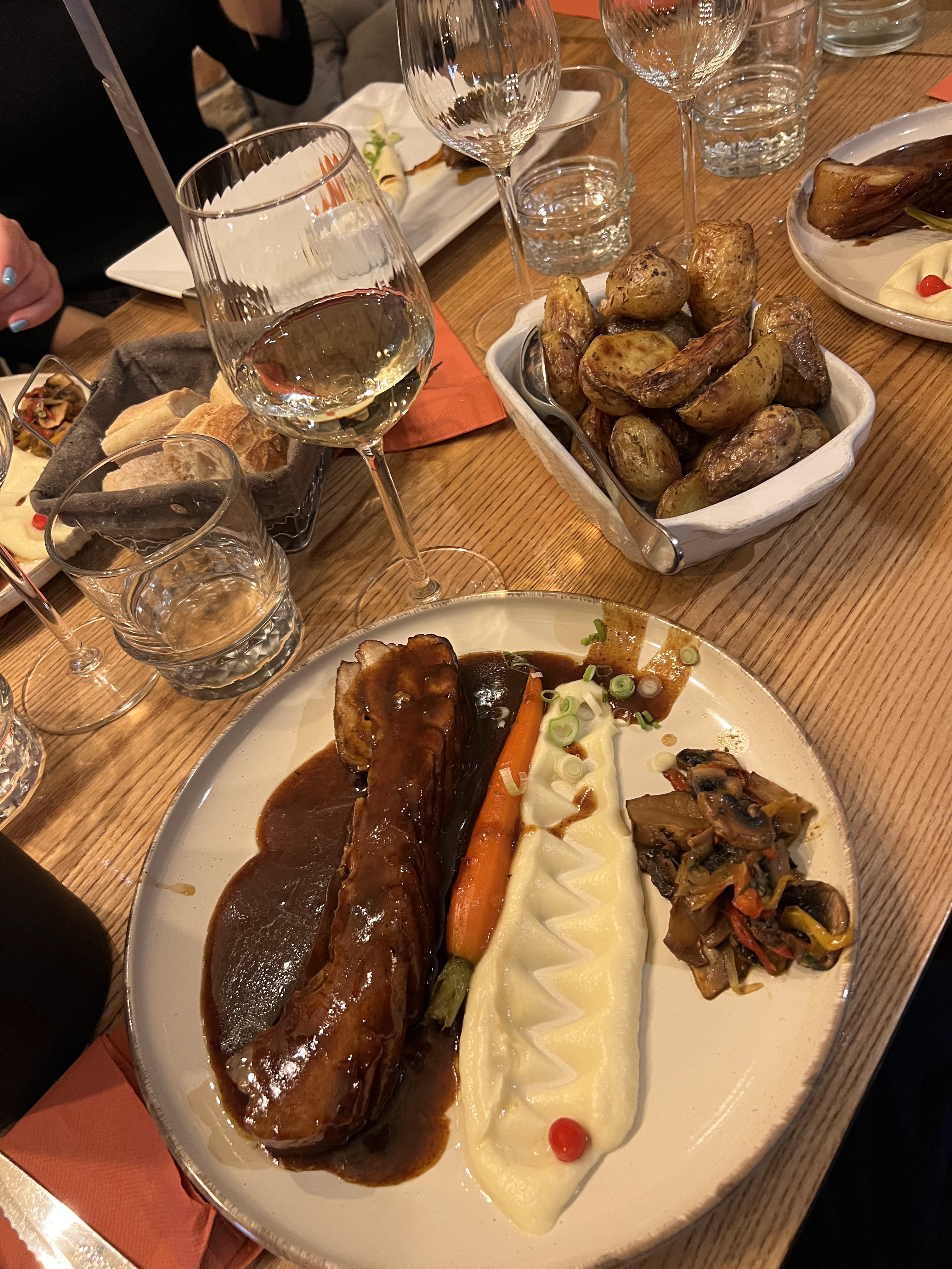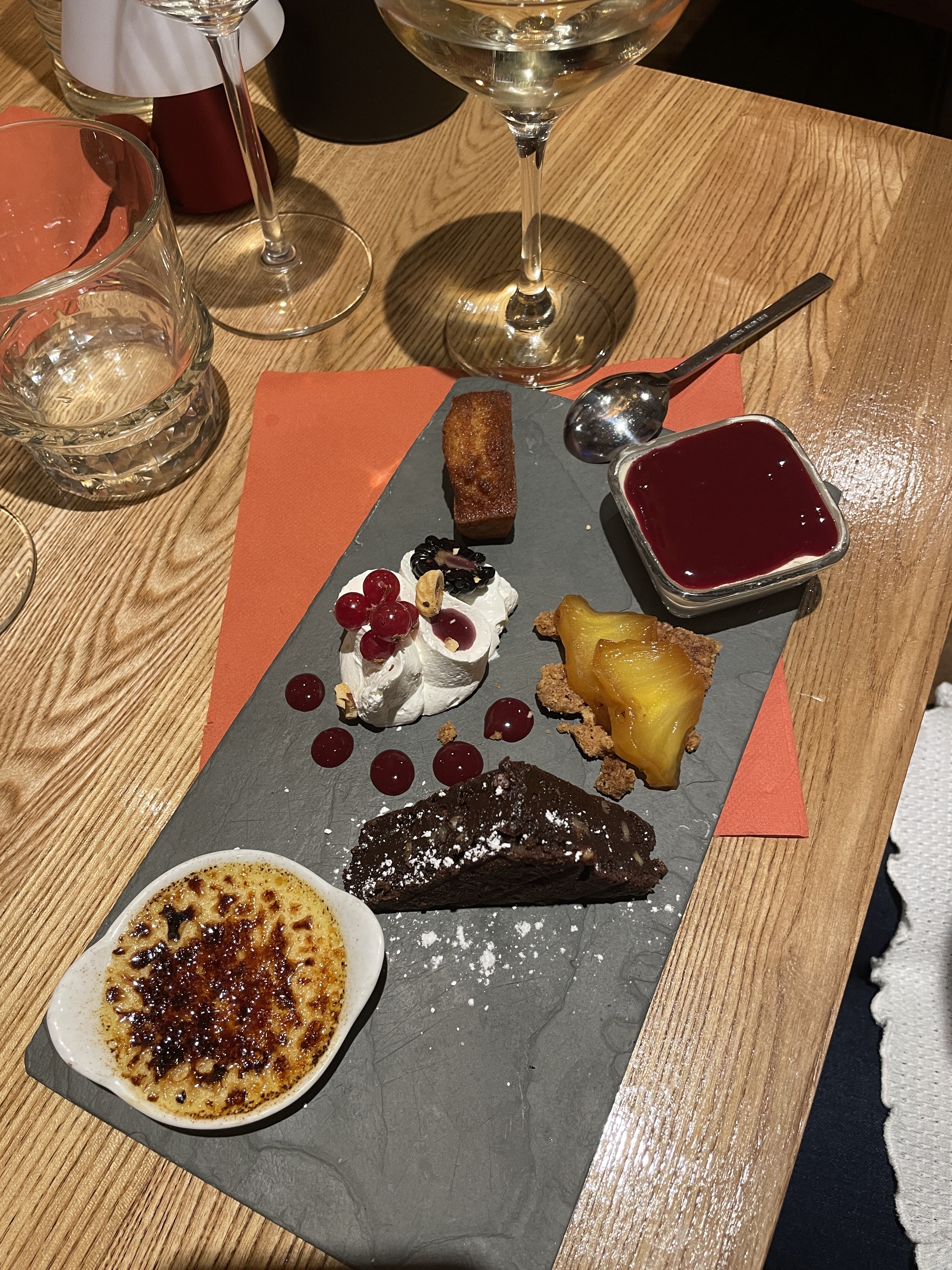 Bon petit restaurant, les réservations sont indispensables. La nourriture était bonne - le porc était assez tendre et la taille des portions était bonne. L'entrée avec du reblochon n'était pas quelque chose que je voudrais répéter - la taille des portions était petite et la salade à côté était trop aigre. La petite entrée de la maison (pâté de poisson) était tout simplement incroyable ! La sélection de desserts du café gourmand était agréable à essayer mais rien de spécial. Dans l'ensemble, c'est un bon endroit mais assez cher et il y en a des autour avec un bien meilleur rapport qualité/prix à mon avis