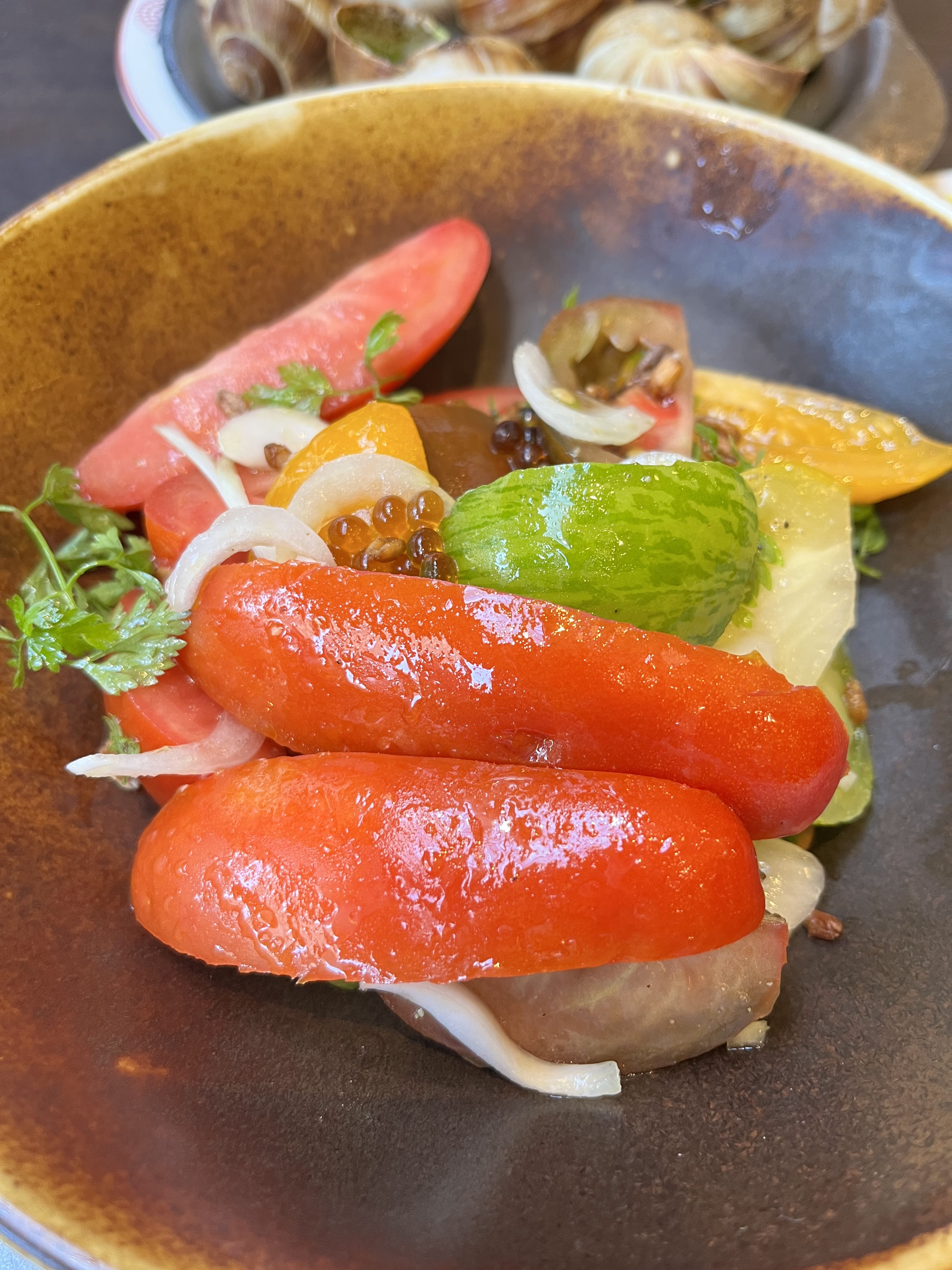 Je suis entré samedi soir sans réservation et je me suis assis immédiatement. Le pain gratuit qu'ils servent est tellement bon et il continue d'arriver, sans que nous le demandions - me faisant manger plus de pain que je ne devrais. Ils servent une généreuse portion d'escargots cuits dans une délicieuse sauce aux herbes (pas trop aillée comme les autres). Nous avons également eu la salade de tomates burrata qui était si rafraîchissante sans la vinaigrette lourde mais juste avec la douceur de sa saveur naturelle. Finalement, le ragoût de bœuf était cuit si tendrement mais je pense que la sauce peut être plus épaisse car elle était assez légère, je ne comprenais pas pourquoi il y avait des penne dans le plat - c'était assez bon tout seul. Nourriture : ⭐️⭐️⭐️⭐️ Service : ⭐️⭐️⭐️⭐️ Ambiance : ⭐️⭐️⭐️ Valeur : ⭐️⭐️⭐️