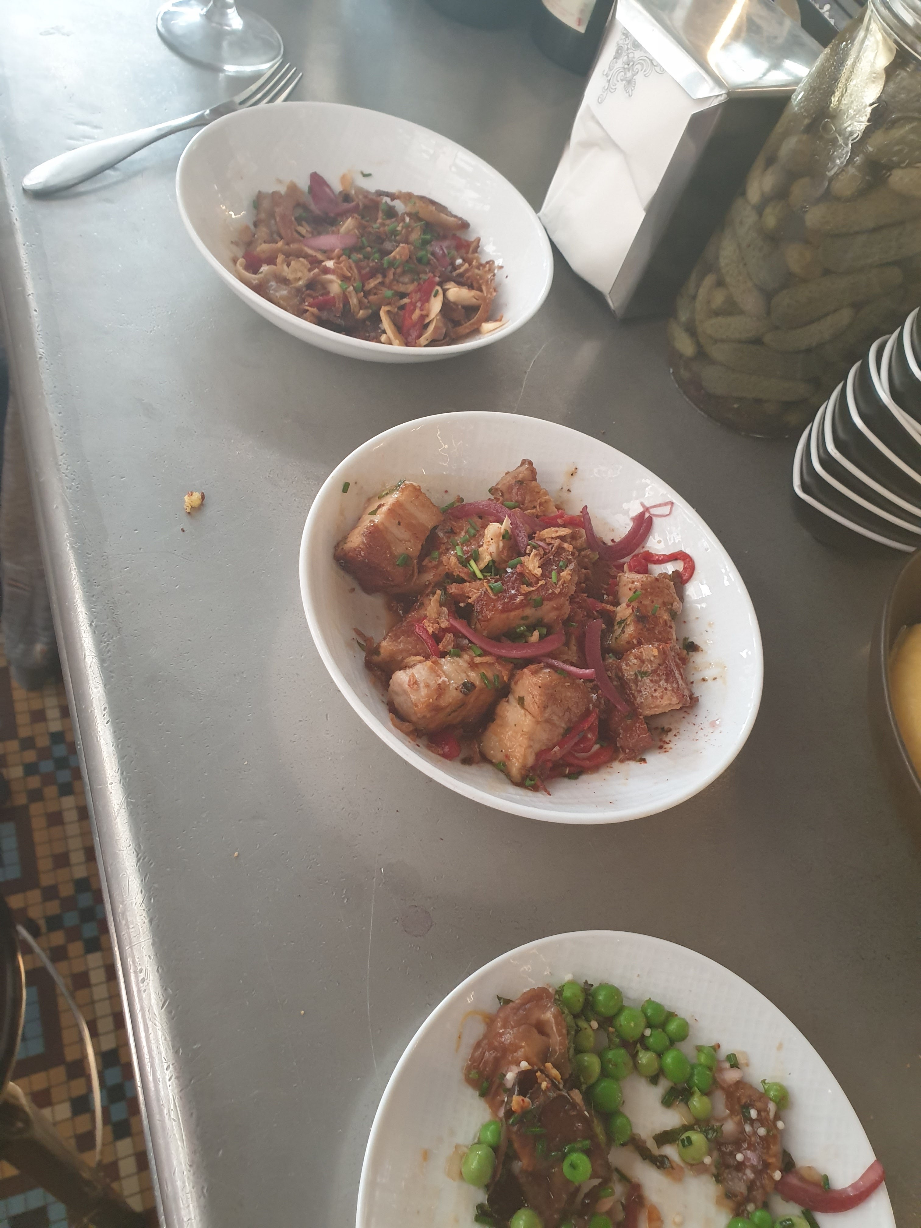 Très bon, plein de petits plats nmen mode tapas autour du cochon. Idéal pour goûter de tout et partager! Un peu plus isolé que les 2 autres, du coup beaucoup plus calme. Le personnel est super, jeune et vraiment sympa.