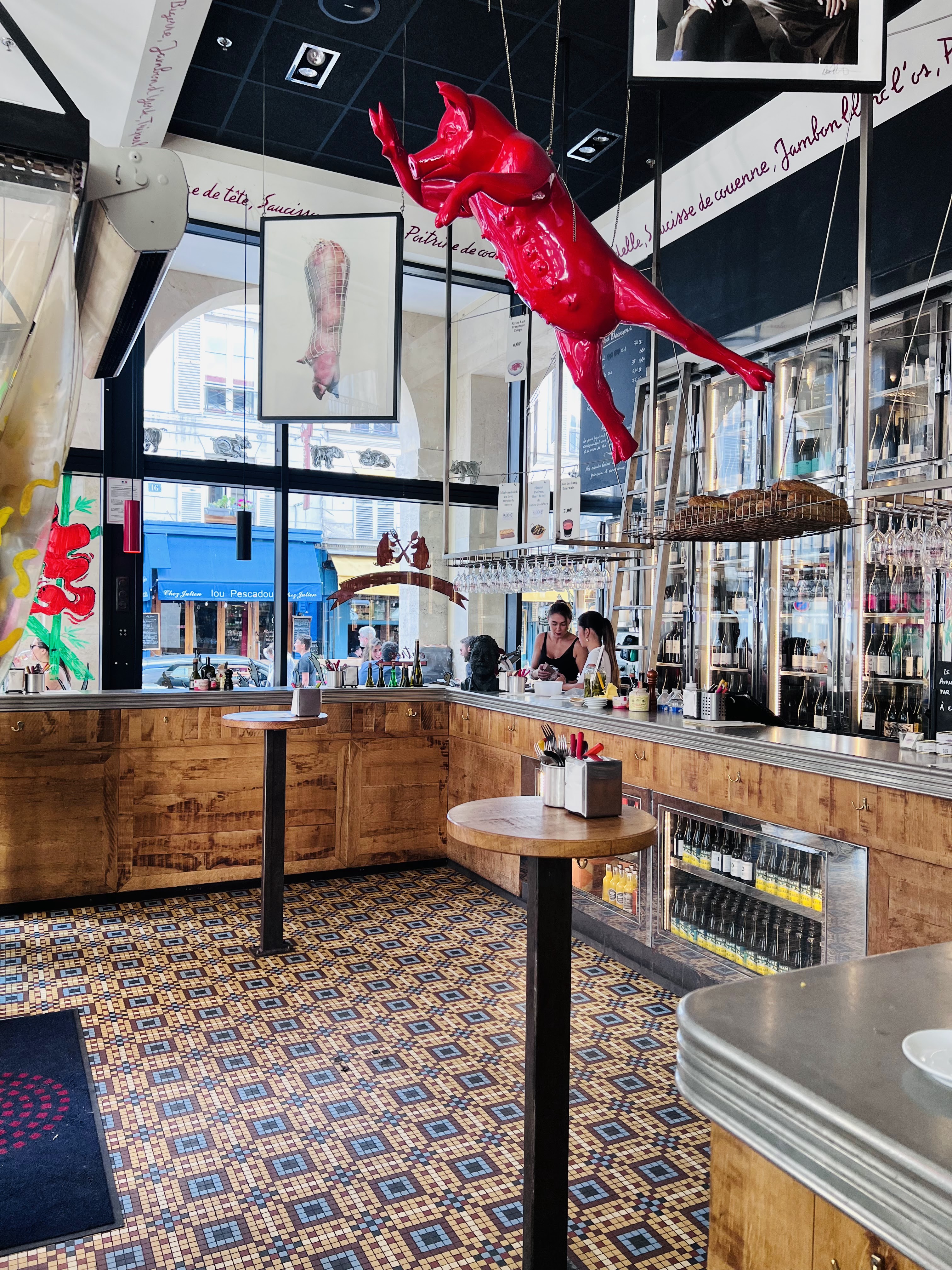 Animé, occupé, très demandé. Excellent vin servi par un personnel compétent, petites bouchées tueuses à partager. Attention, la majeure partie de la salle est réservée aux personnes debout : si vous voulez une place assise, arrivez tôt. Bande-son super funky, décor de cochon amusant.