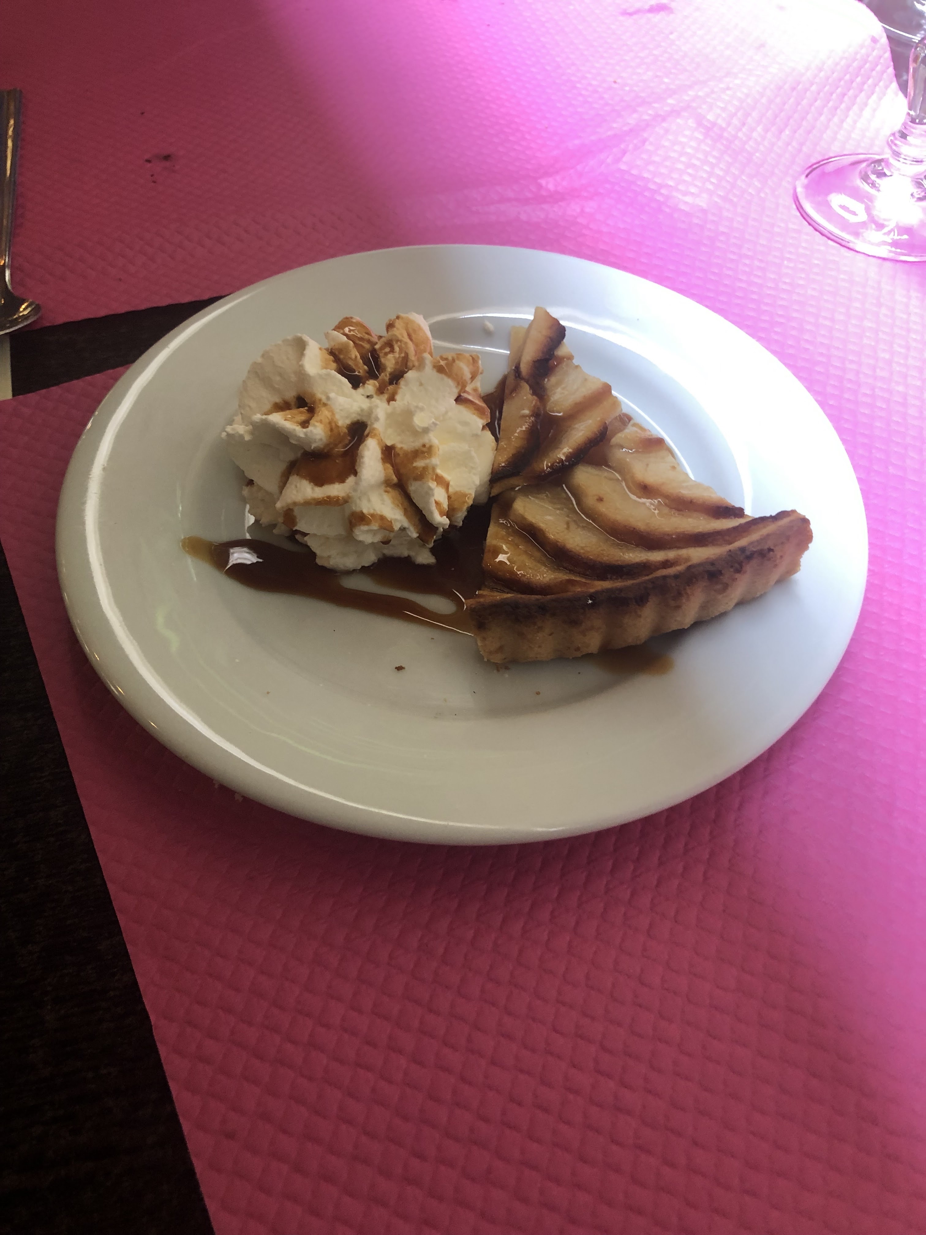 Nous étions 4 personnes à table nous avons pris de menu et deux plats à la carte , attente très longue ,Aux bout d'un moment mon plat arrive , les entrées des menus arrive mais toujours pas l'autre au bout de 20min je leur demande le plats savoir si il l'ont pas oublier effectivement ils l'avais oublié . Les plats bon pour le prix Nous arrivons au dessert ce qui était très long aussi , tarte aux pommes : une toute petite part mais très bonne Glace :des glaces normal Très déçus en tout cas du service peut être manque communication