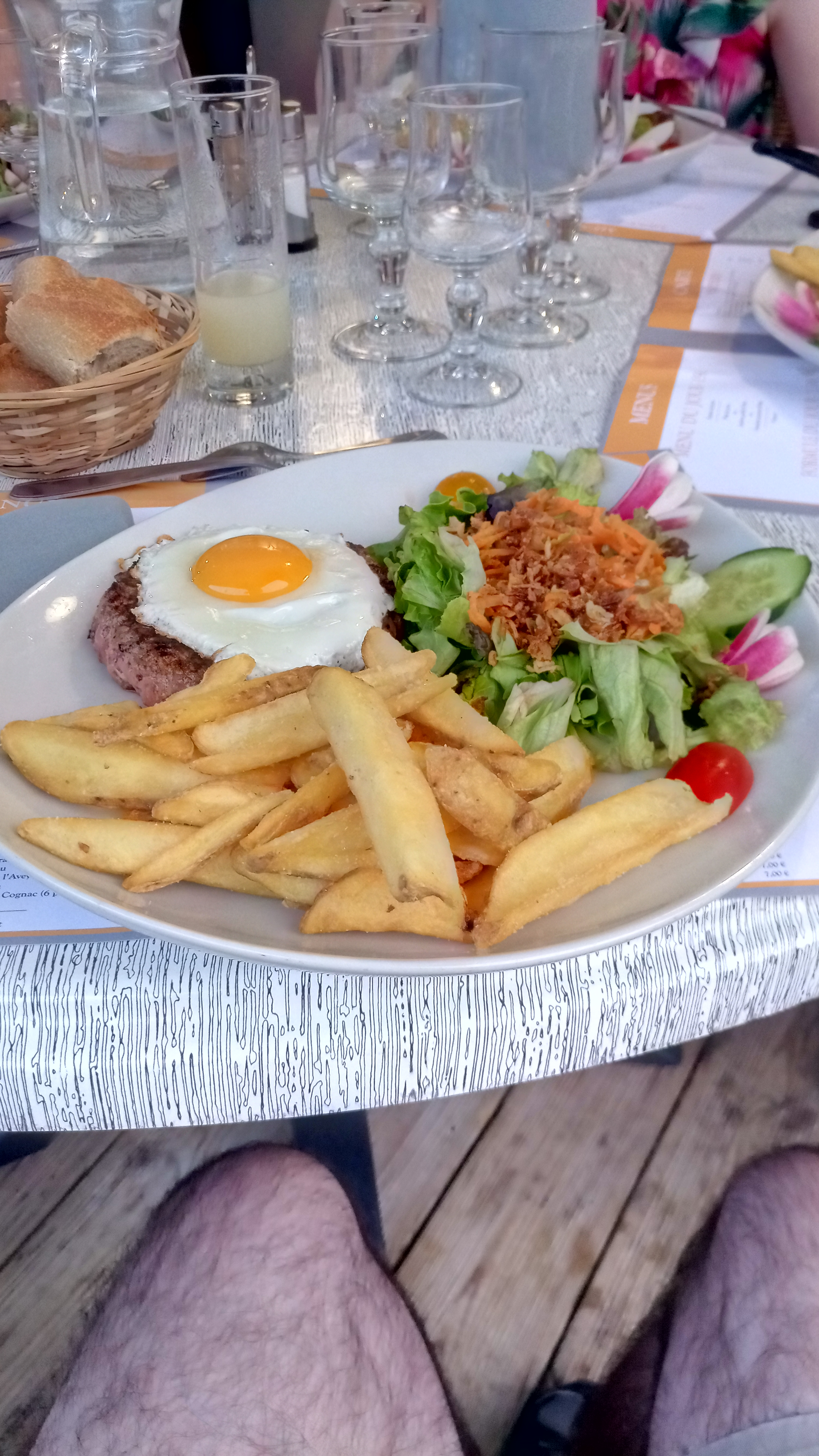 Steak à cheval demandé à point, cuit correctement mais brûlé en surface pas très agréable. A part cela les prix sont correct à retenter quand même avec une belle terrasse surplombant l'Orb.