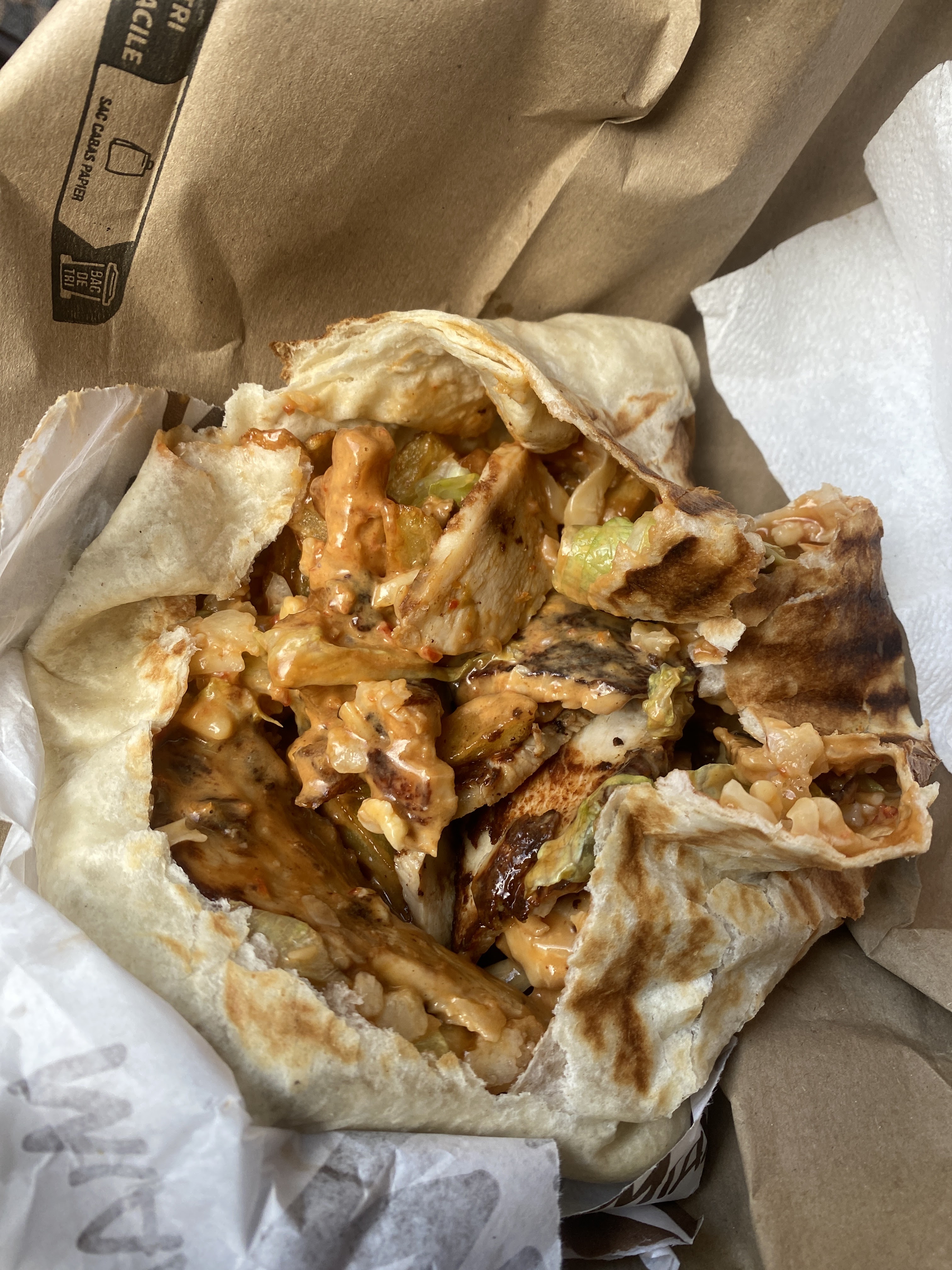 , tacos faits sans vrai sauce fromagère, aucun goût j’ai . A la place de la sauce fromagère elle vous mets une autre sauce sans même demander mon avis je rentre chez moi pour manger j’ouvre le sac je vois alors quelle m’a mis une sauce . Un vraie tacos ce fais avec la sauce fromagère ! Je déconseille vivement.